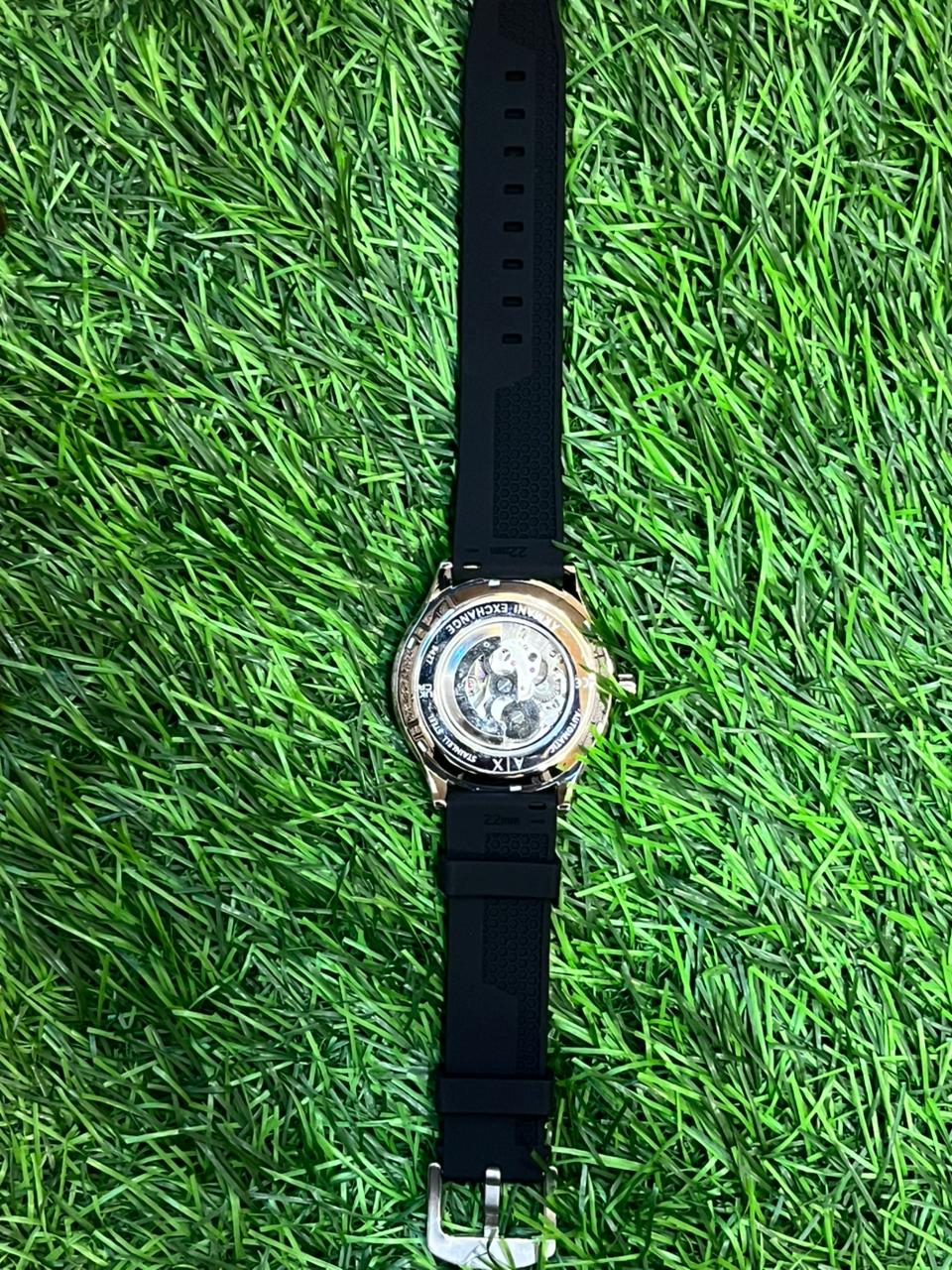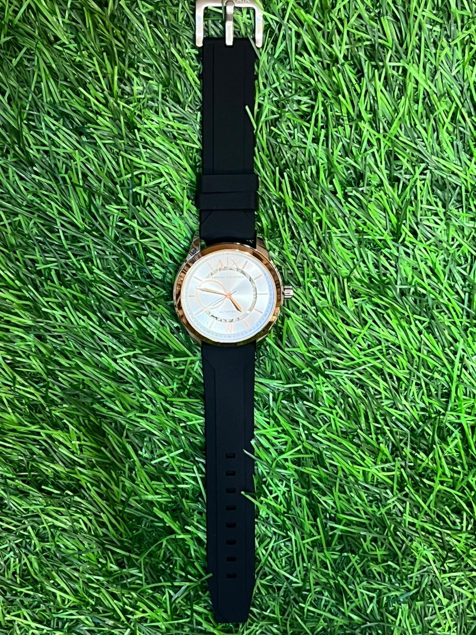 This Arm🔥ni Exch🔥nge automatic watch for men features a sleek silicon belt and a robust design. Perfect for everyday wear, it combines luxury with sporty durability. Its automatic movement ensures precise timekeeping without the need for a battery. Price: ₹2,599/-
