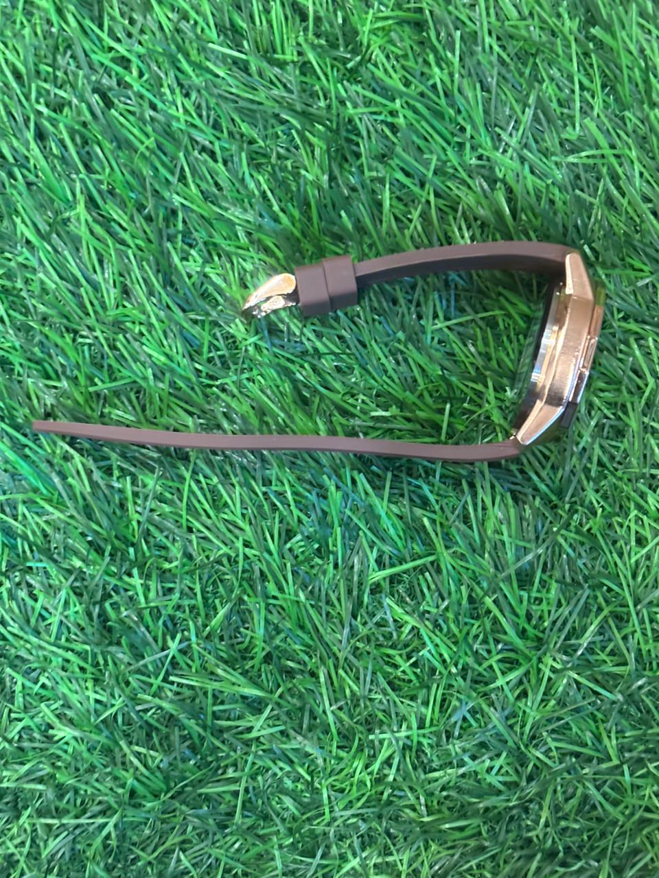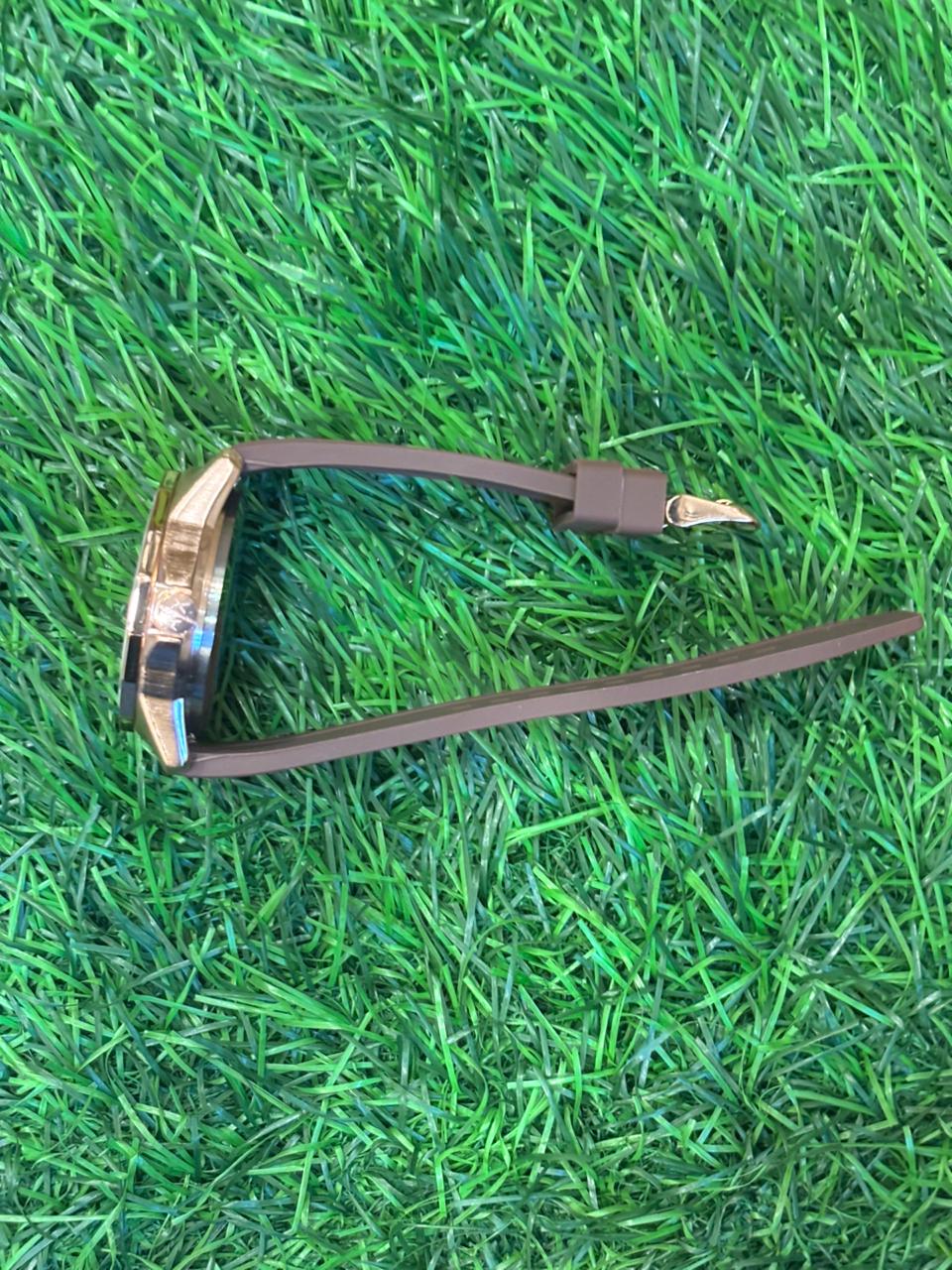 - Build: A robust stainless steel case with a polished rose gold finish, paired with a comfortable and durable brown silicon strap.