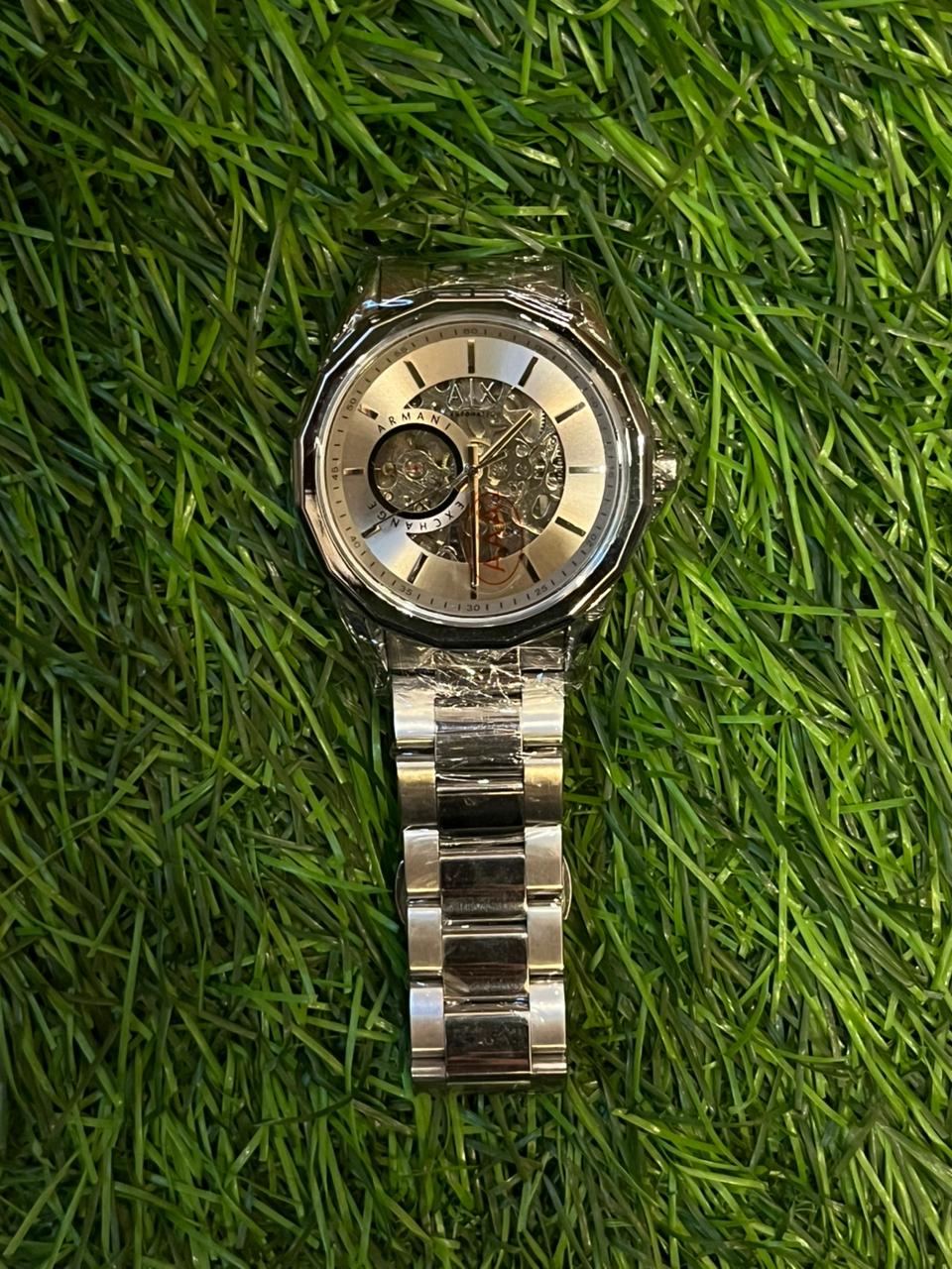 Arm🔥ni Exch🔥nge automatic silver chain watch for men’s