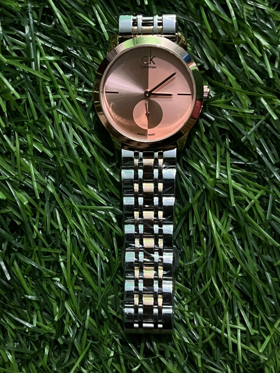 C🔥lvin Kl🔥in Dual Tone Chain– Pinkish Dial for Women’s