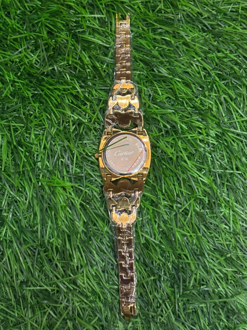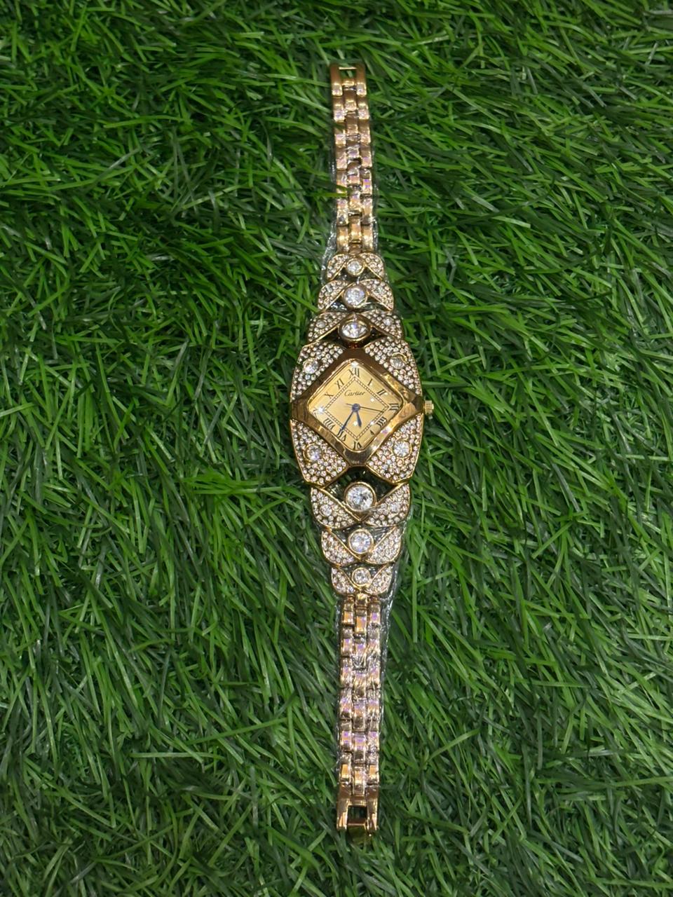 This exquisite C🔥rtier ladies' watch is a true statement of glamour and luxury. The entire timepiece, from the unique bracelet to the elegant case, is lavishly adorned with sparkling crystals. The sophisticated black dial with classic Roman numerals provides a stunning contrast, creating a watch that is both a timepiece and a magnificent piece of jewelry. Price: ₹1,999/-