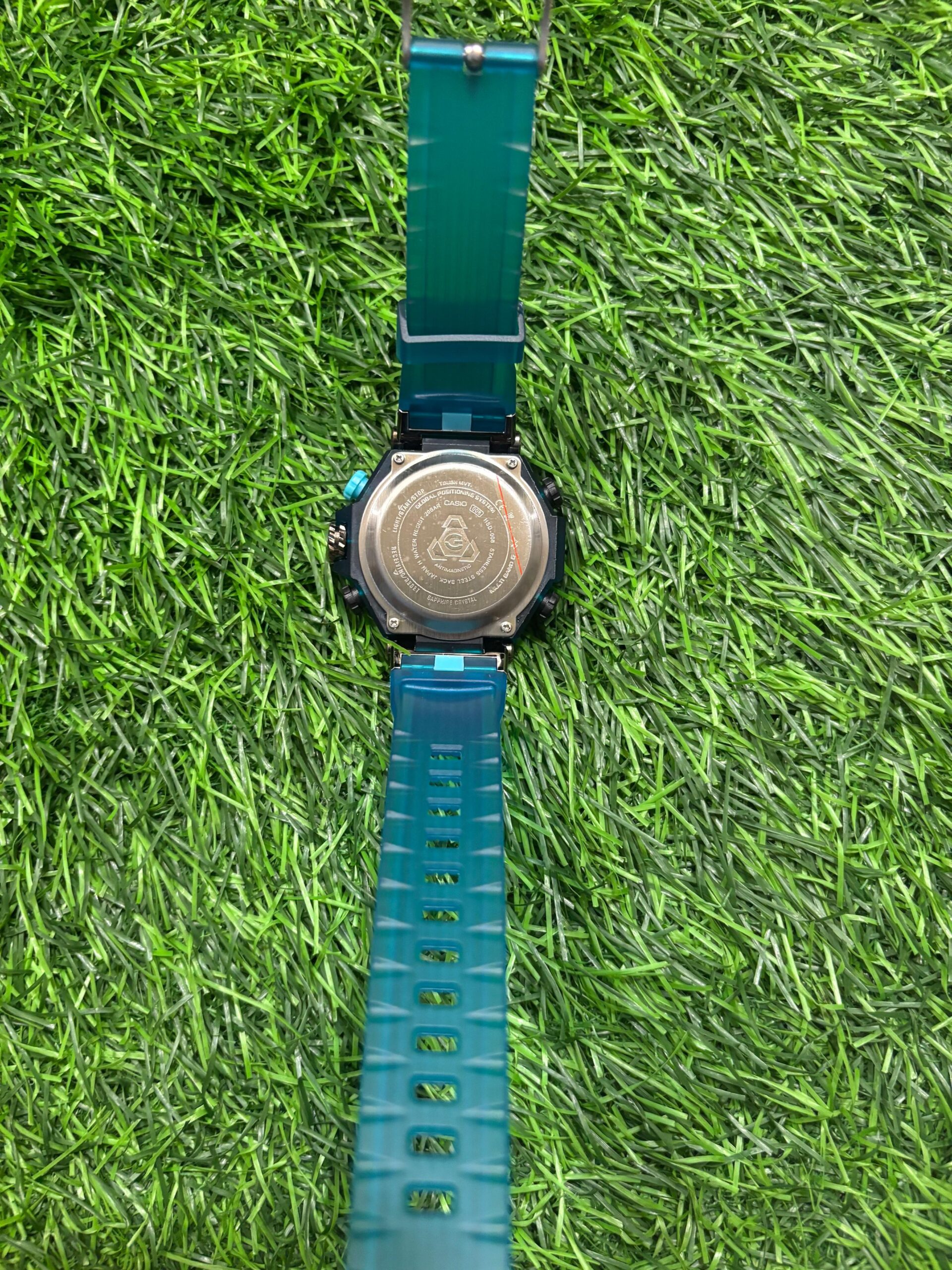 Make a bold statement with this C🔥si🔥 G-Sh🔥ck sports watch. The striking teal and black design is built for durability and action. Featuring both analog and digital displays, it's the perfect watch for those who lead an active lifestyle. Price: ₹1,550/-