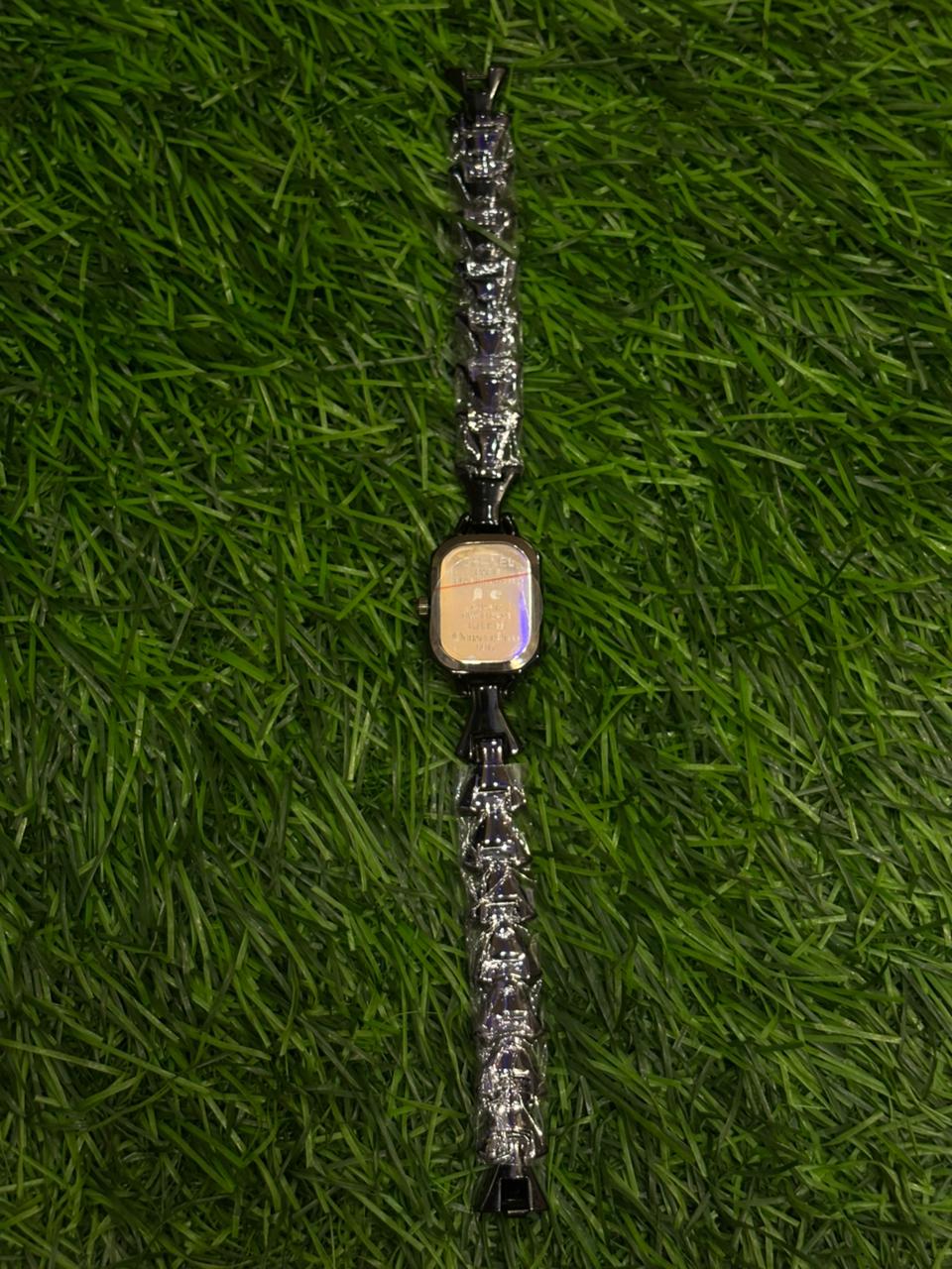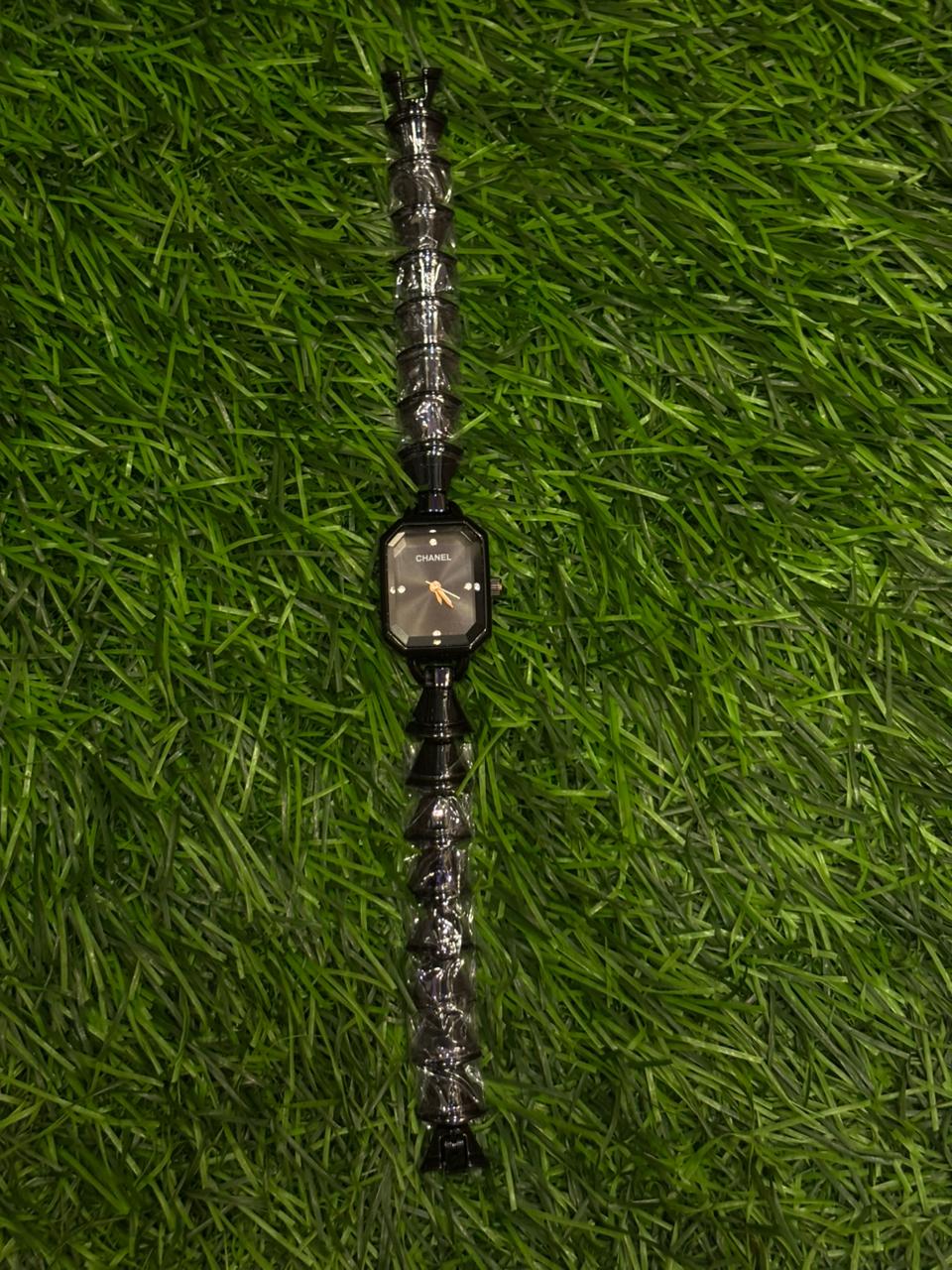 This Ch🔥nel Première watch is a statement in modern elegance. It features the iconic octagonal case inspired by the Place Vendôme, paired with a unique and sculptural black chain bracelet. The minimalist black dial with delicate gold hands completes a look of timeless Parisian chic. Price: ₹1,949/-