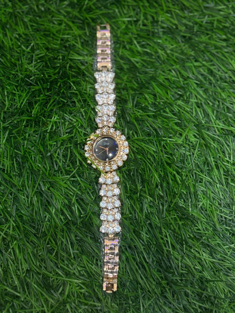 This dazzling D🔥or ladies' watch is the epitome of high-fashion elegance. The entire timepiece is a cascade of brilliant, oversized crystals, from the intricate bracelet to the halo-style bezel. The stunning design frames a minimalist black dial, creating a luxurious and unforgettable statement piece that's sure to turn heads. Price: ₹1,999/-
