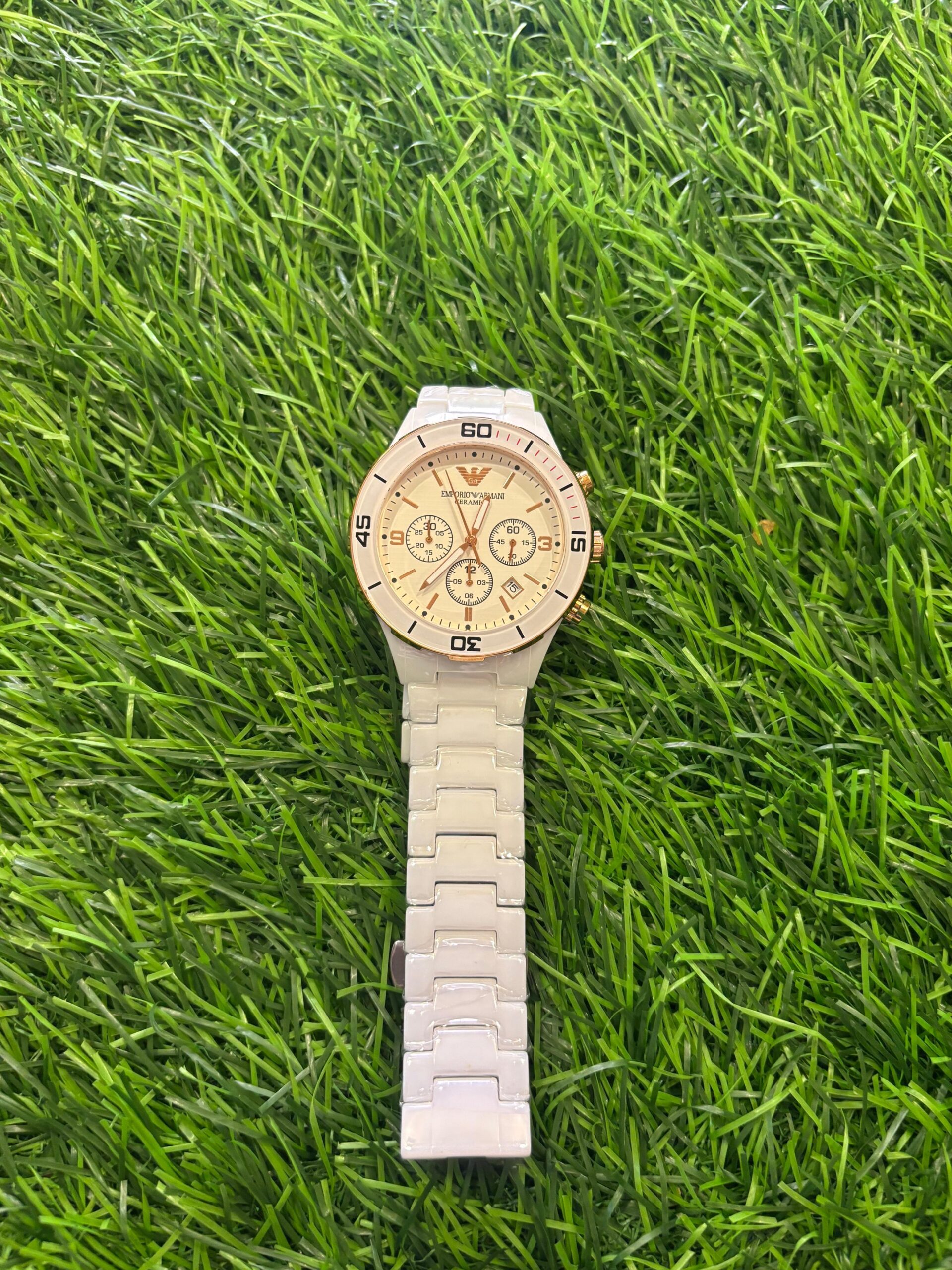 Emp🔥rio Arm🔥ni white ceramic Belt & Gold Tones Watch