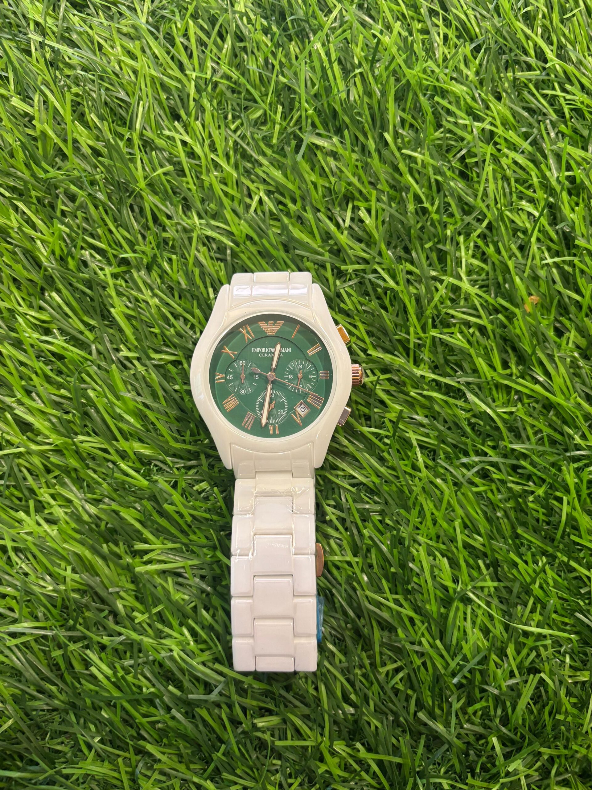 Emp🔥rio Arm🔥ni white ceramic Belt & Green Dial Watch