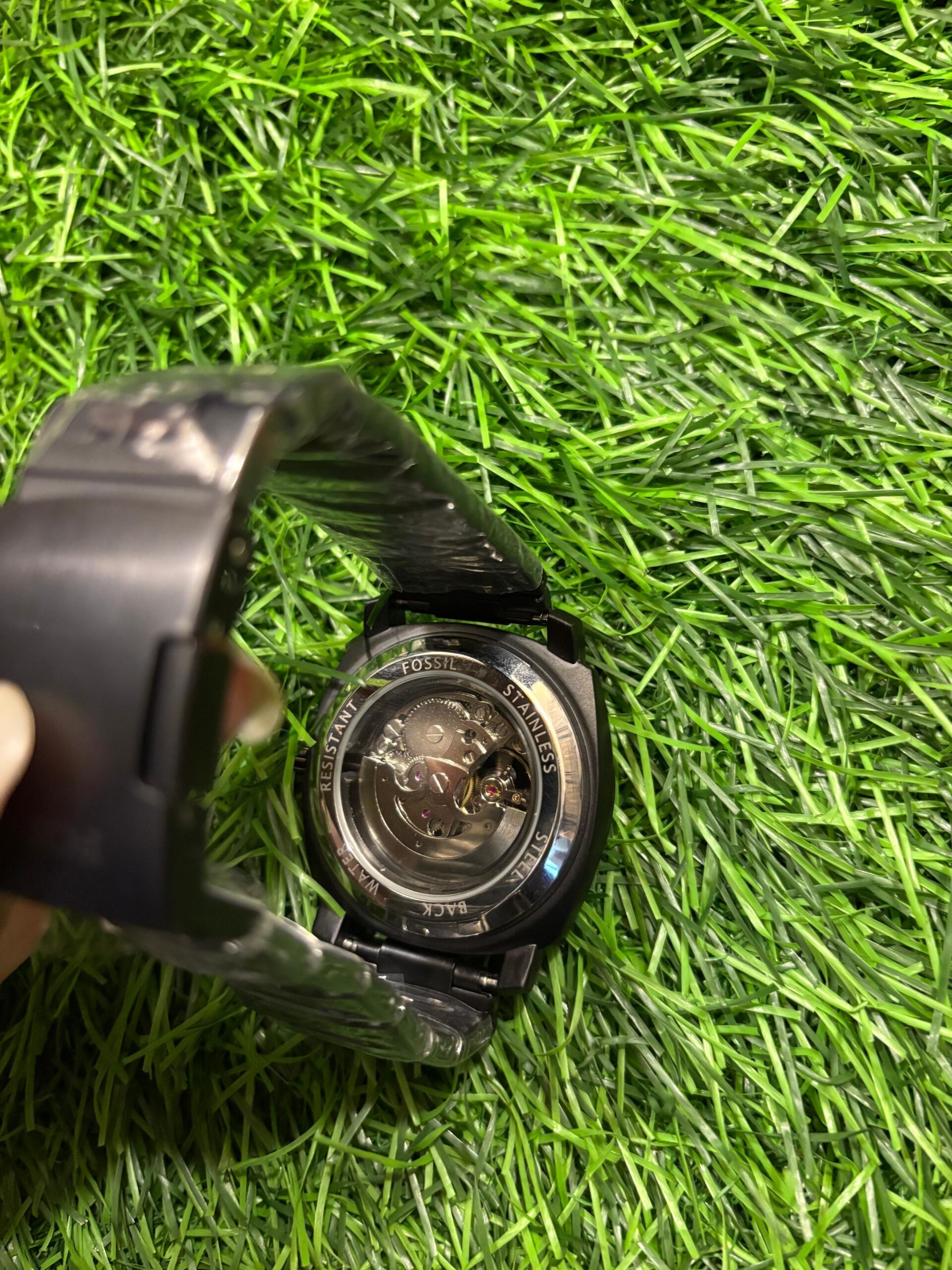 Experience the art of watchmaking with this F🔥ssil automatic watch. The striking skeleton dial beautifully showcases the golden gears of the self-winding movement. Encased in a bold, black stainless steel body and bracelet, this watch is a statement of sophisticated, mechanical style. Price: ₹2,699/-