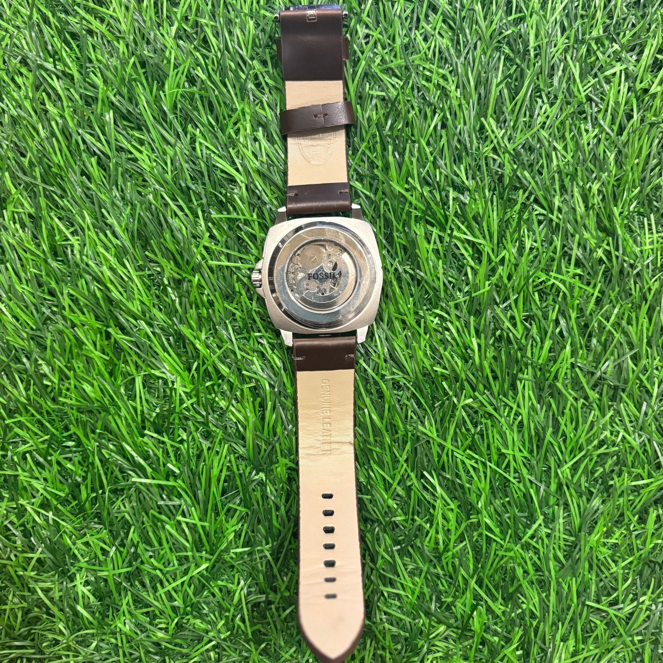This handsome F🔥ssil watch showcases the art of timekeeping with its captivating automatic movement, visible through an elegant dial. Paired with a classic brown leather strap and a silver-tone case, it's a perfect blend of modern mechanics and timeless style. Price: ₹2,499/-