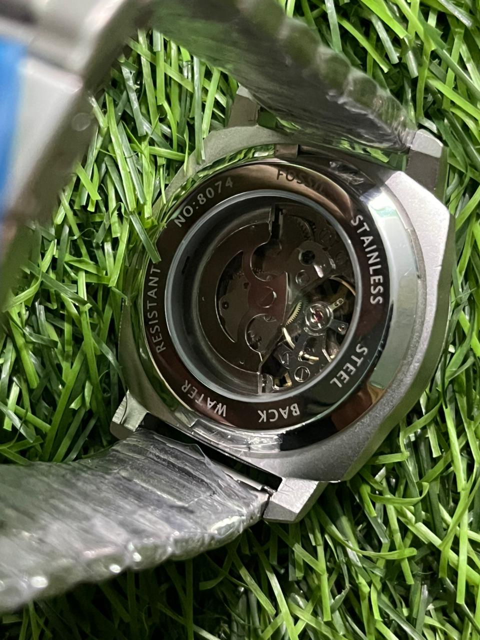 F🔥ssil silver chain black dial automatic watch for men