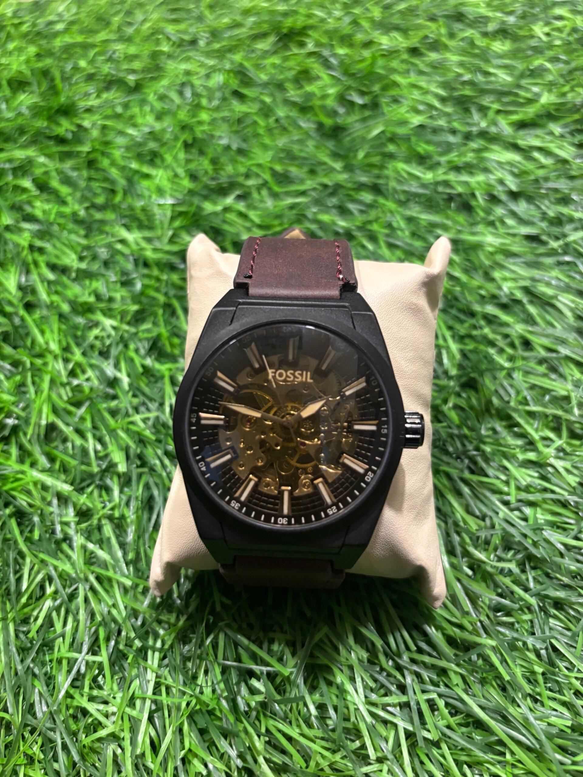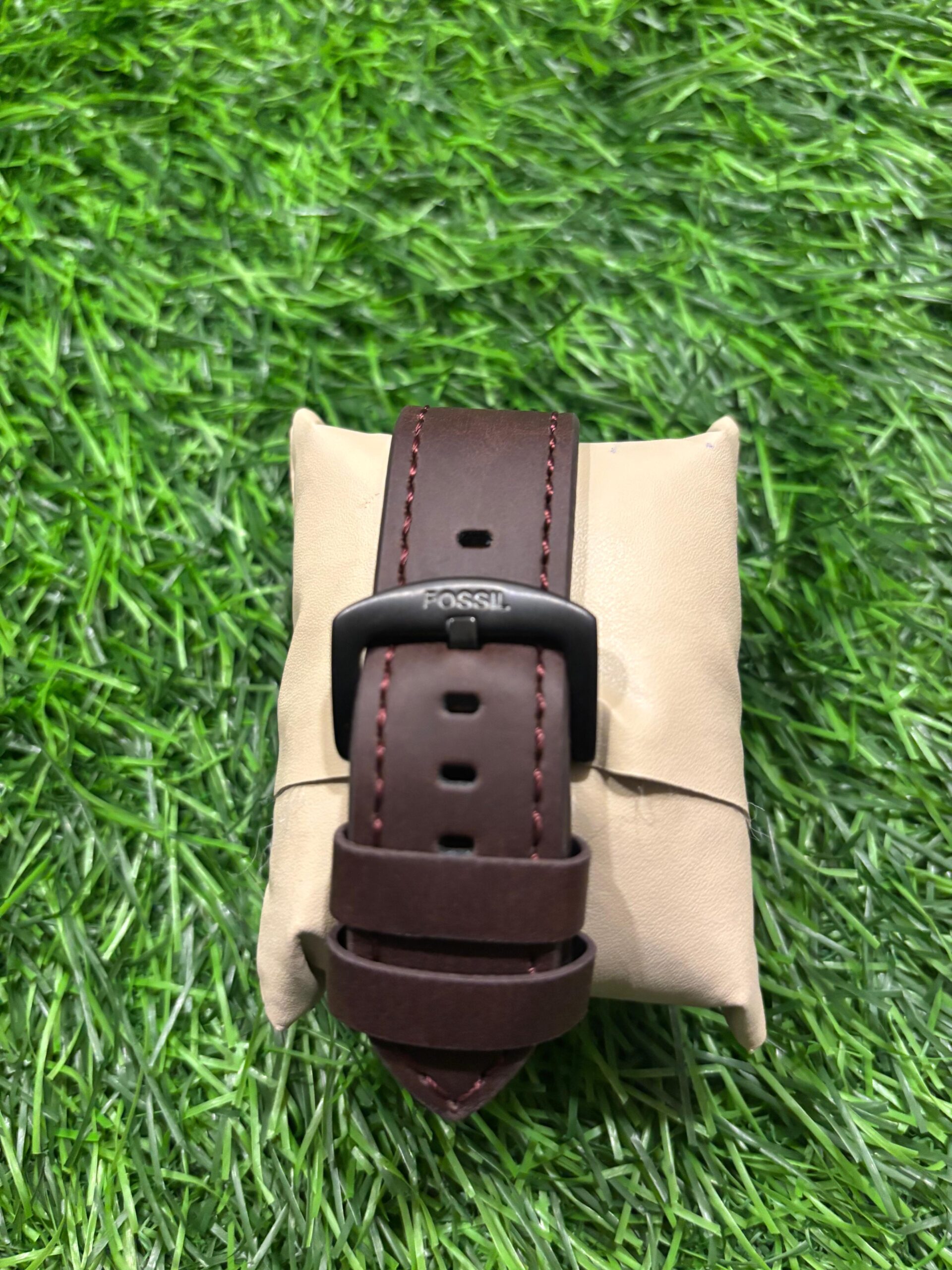 This striking F🔥ssil automatic watch combines industrial design with classic style. The captivating skeleton dial reveals the intricate golden workings of the self-winding movement, housed in a modern black case. Paired with a rich brown leather strap, it's a sophisticated timepiece for the modern man. Price: ₹2,499/-