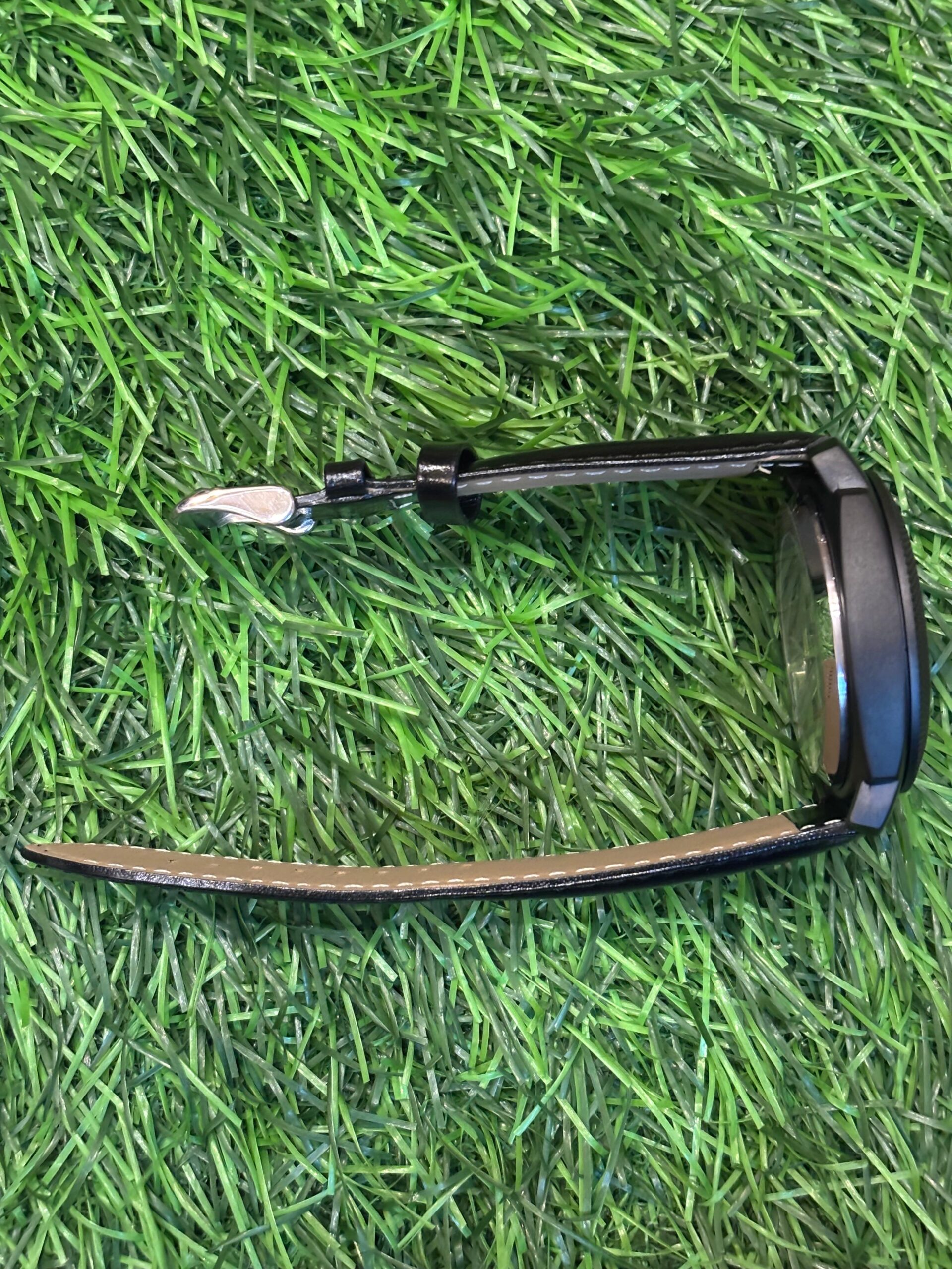 - Build: Constructed with a durable, black-plated stainless steel case featuring a distinctive textured bezel, paired with a comfortable high-quality black leather strap.