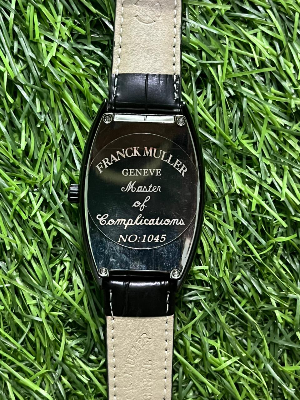 Discover the distinctive elegance of the Fr🔥nck M🔥ller Master of Complications. This timepiece is renowned for its signature tonneau-shaped case, finished in sleek black for a modern and sophisticated look. Paired with a high-quality black leather strap, it sits comfortably on the wrist while making a bold statement. The minimalist dial design exudes class and refinement. Price: ₹2,800/-