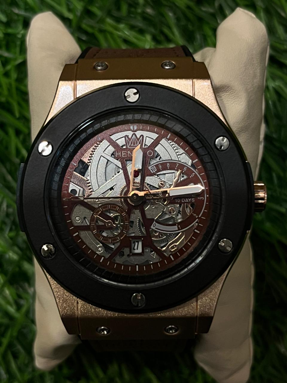Mobillions Product Information - H🔥bl🔥t Automatic Rose Gold Brown Belt Watch