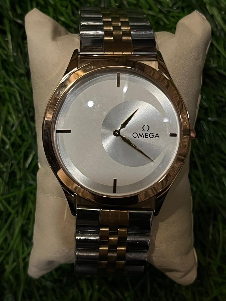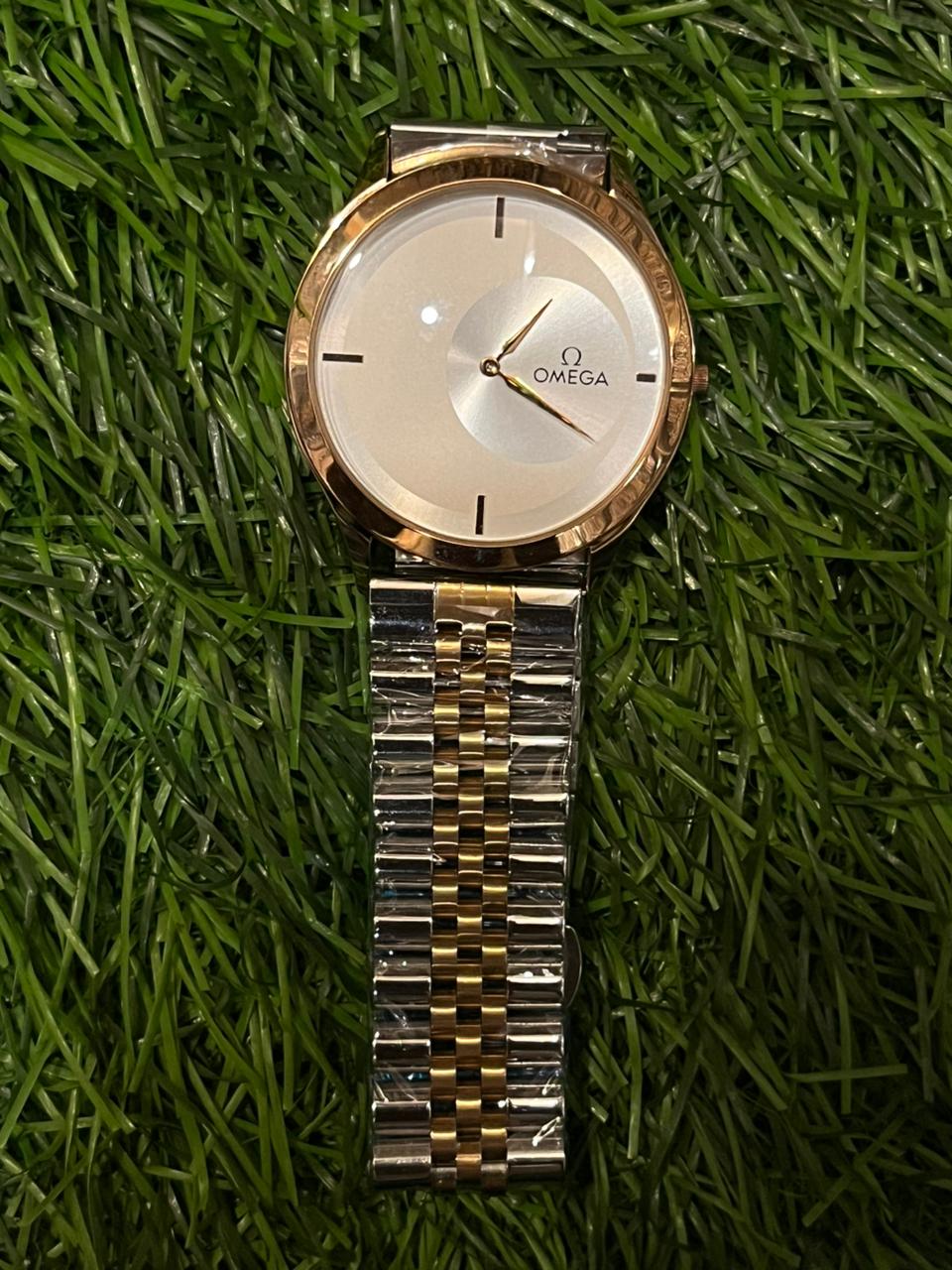 Om🔥ga slim dual tone chain watch for men