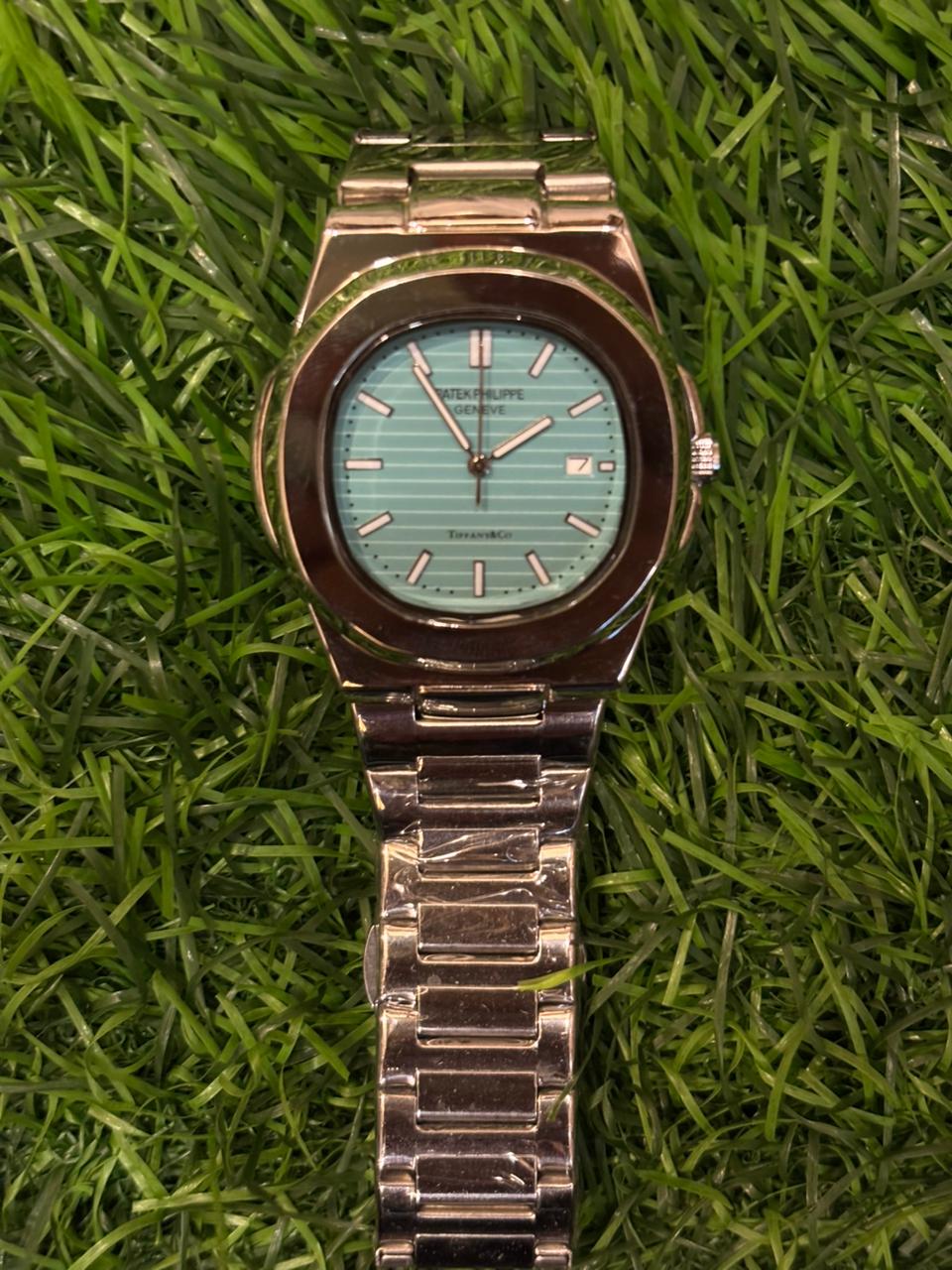 A stunning timepiece that combines the timeless elegance of P🔥tek Ph🔥lippe with the iconic Tiffany blue dial. This watch features a sleek all-silver stainless steel case and bracelet, offering a look of pure sophistication and class. The co-branded dial makes it a unique collector's piece.