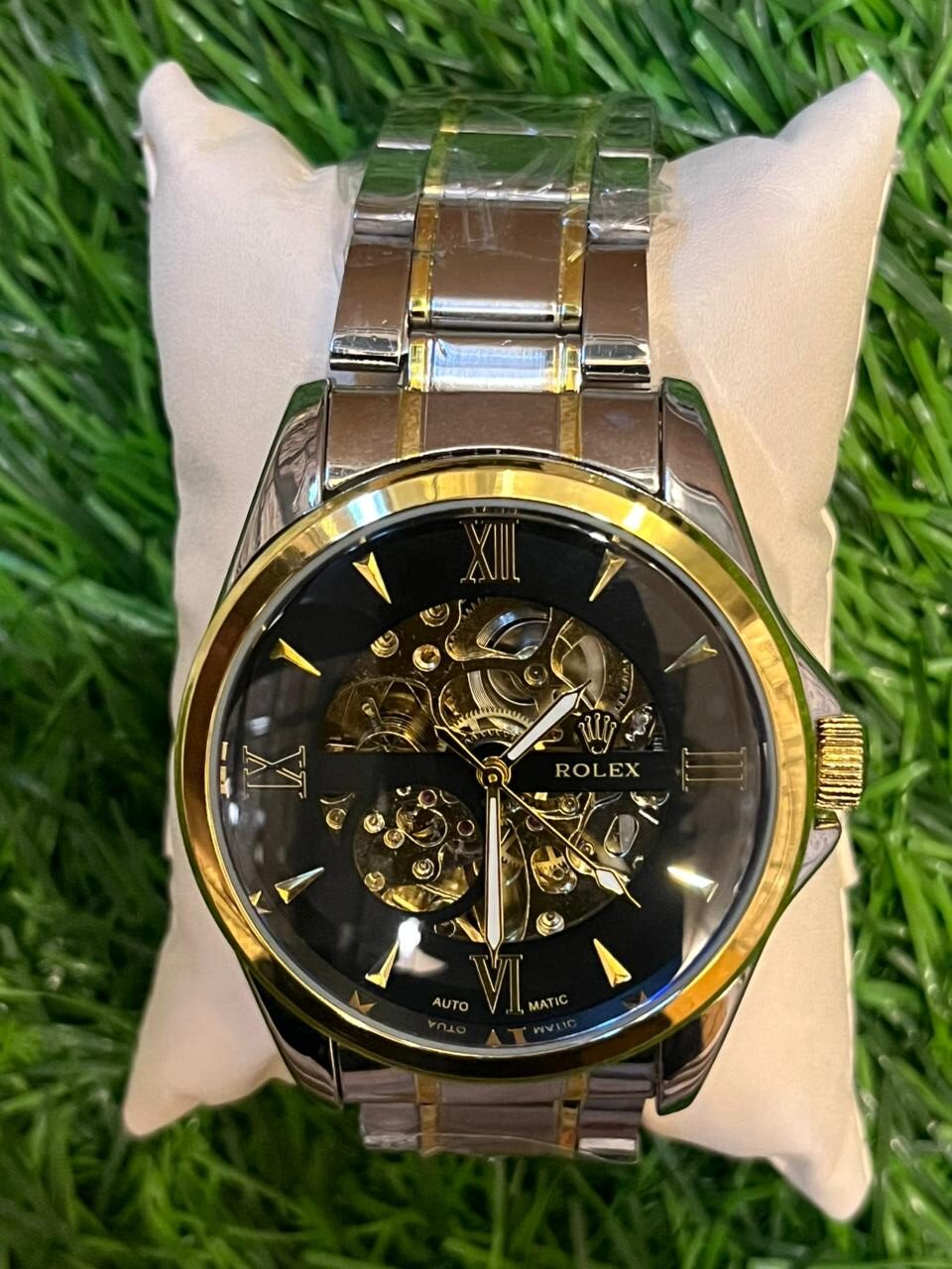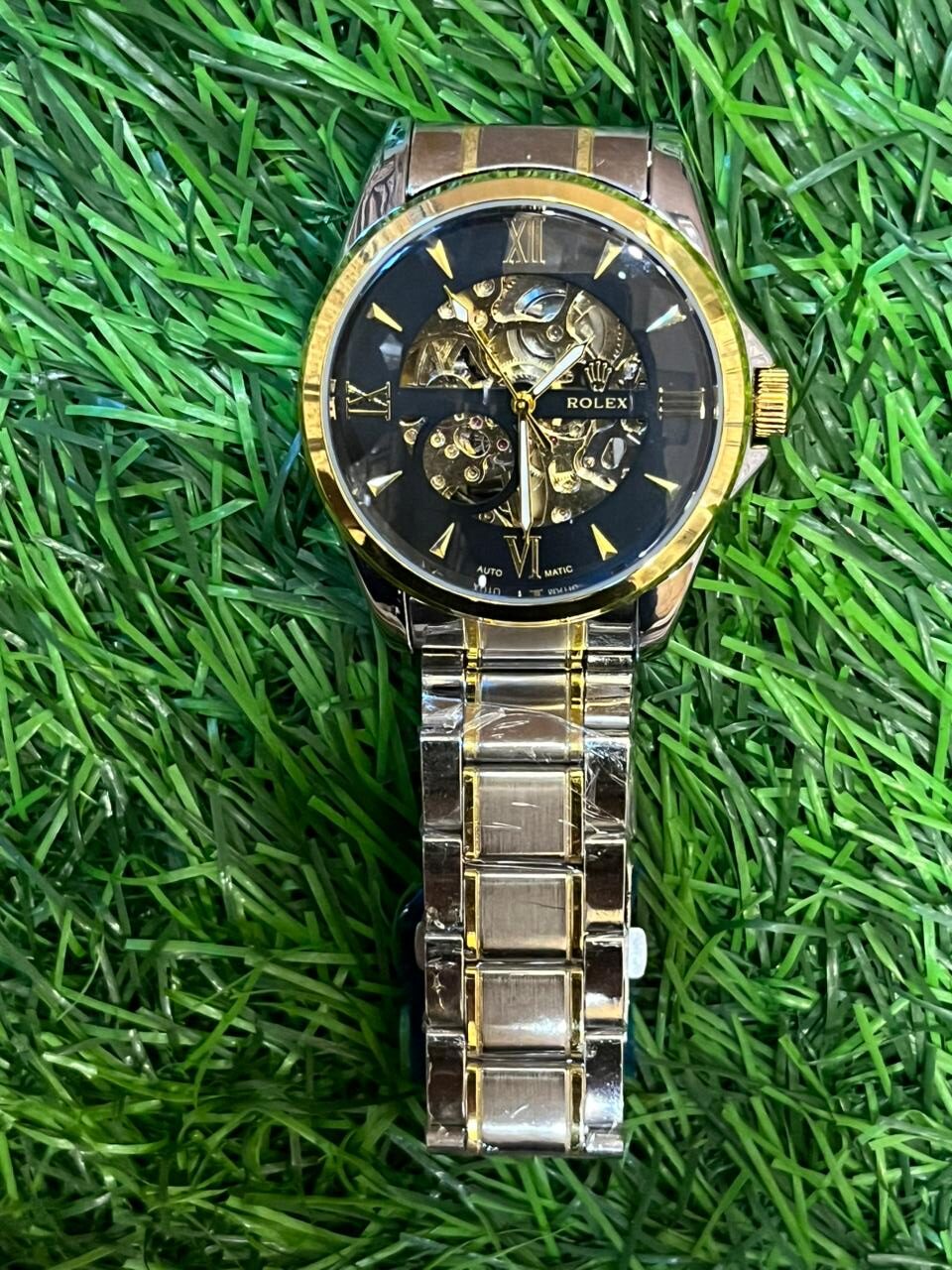 Experience the timeless elegance of the R🔥lex Automatic dual-tone watch for men. Featuring a classic combination of silver and gold stainless steel chain, this watch is a statement of luxury. Powered by a precise automatic movement, it ensures accurate timekeeping and enduring style. Price: ₹2,499/-