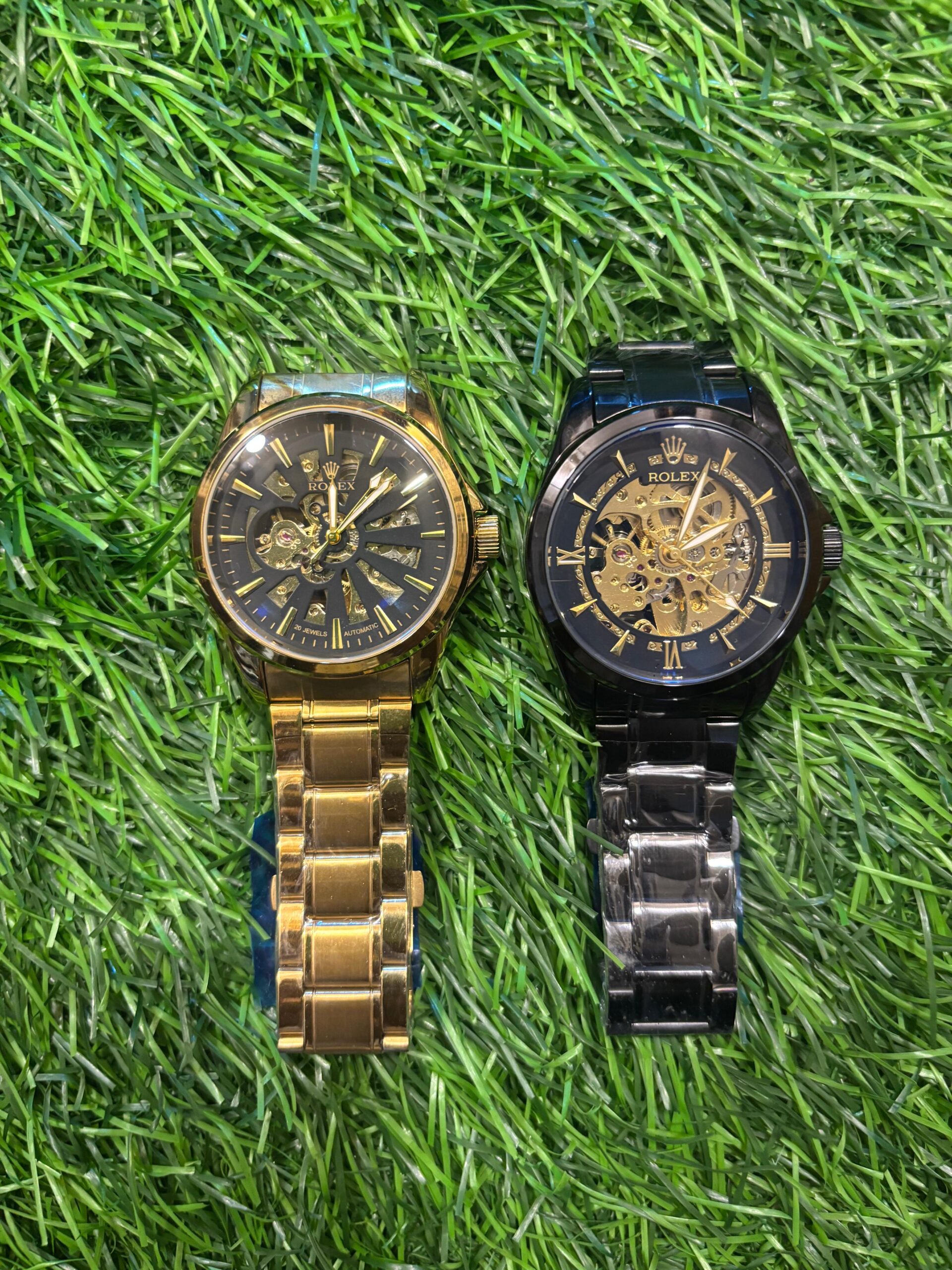 A bold fusion of classic luxury and mechanical artistry. This men's R🔥lex automatic watch features an intricate skeleton dial, offering a captivating view of its self-winding movement. Housed in a durable stainless steel case and available in striking gold or sleek black, this timepiece is a true statement of style and engineering. Price: ₹2,499/-