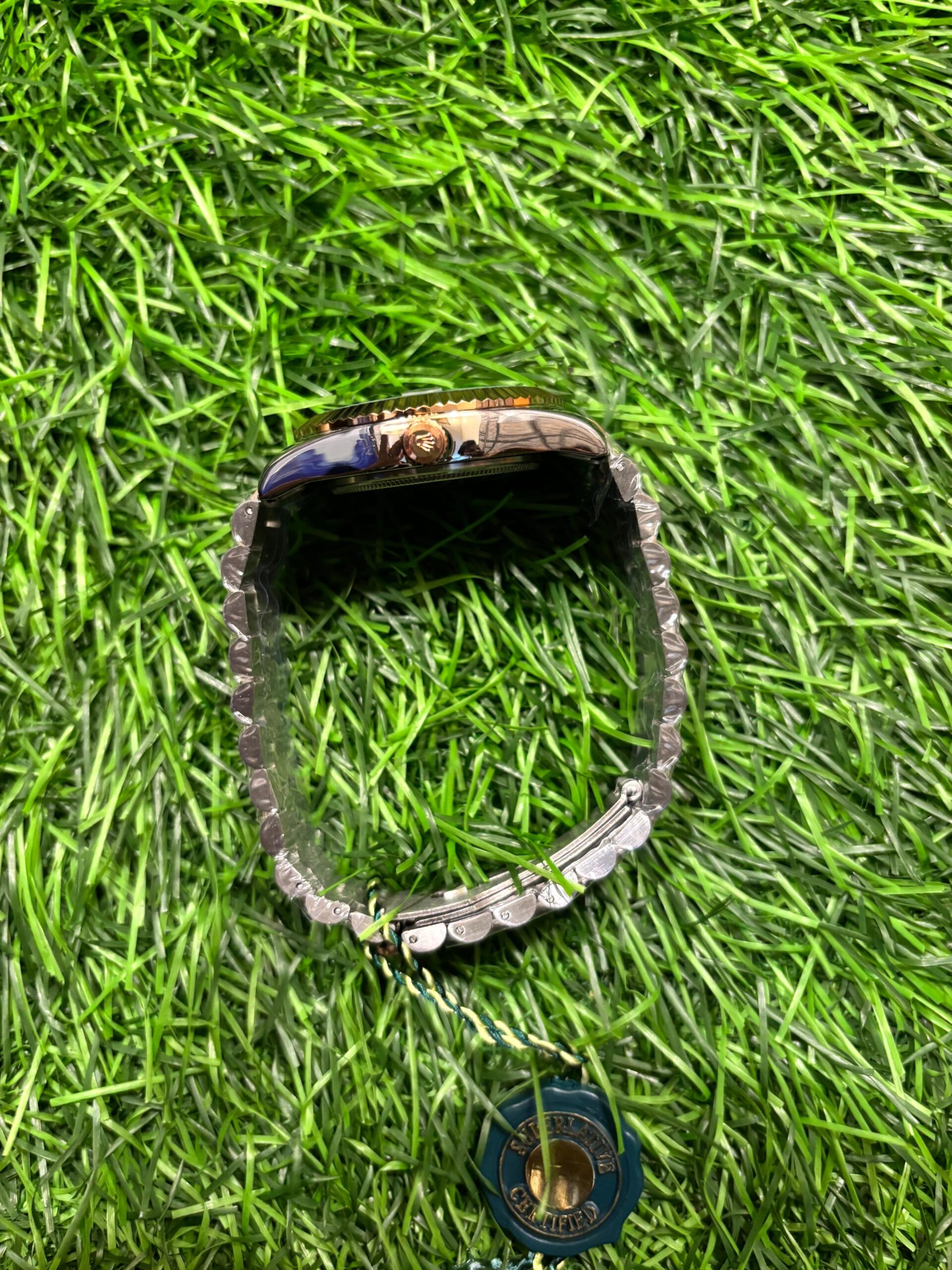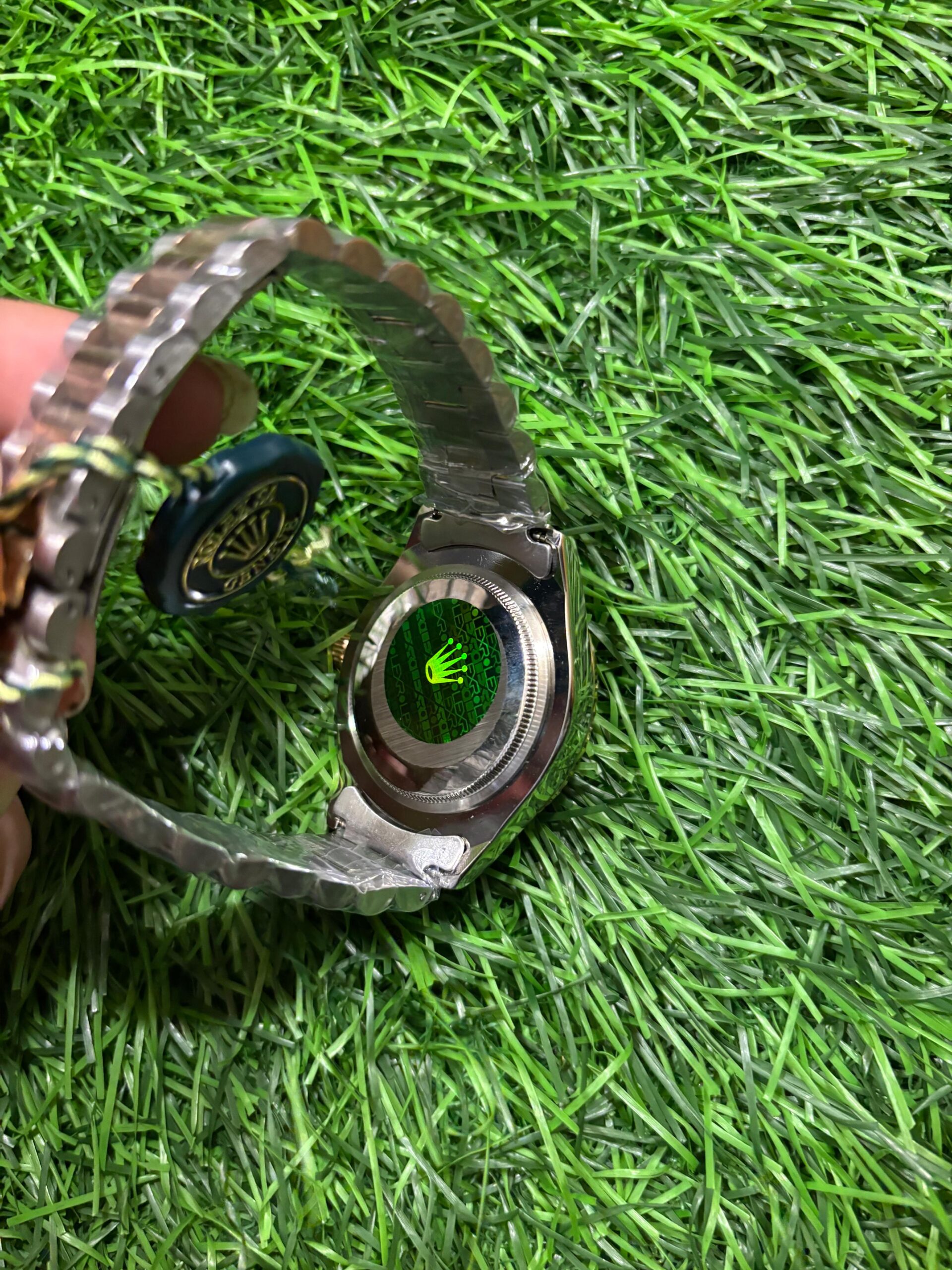 A classic statement of luxury, this R🔥lex watch features a stunning olive green dial that captures the eye. The iconic fluted bezel in rose gold and the elegant two-tone stainless steel bracelet complete this timeless design, making it a symbol of success and prestige. Price: ₹2,049/-