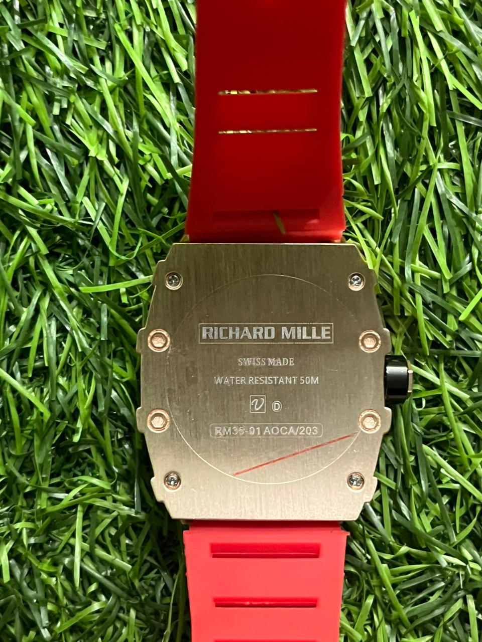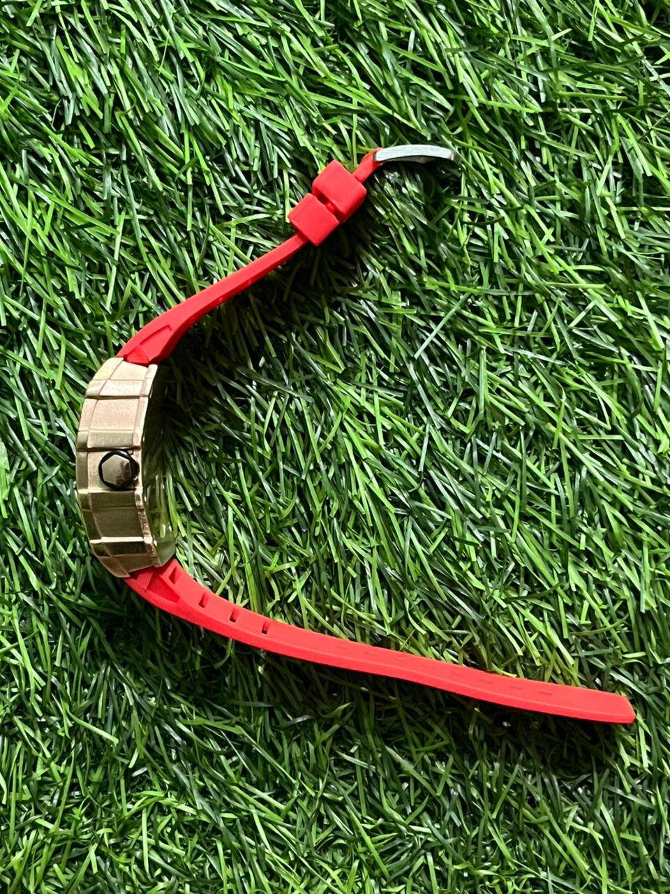 Experience the passionate design of the Rich🔥rd Mi🔥lie RM35-01 'Rafa' edition. This stunning timepiece features a luxurious rose gold-finished case paired with a vibrant red silicon strap that demands attention. The intricate skeleton dial showcases the complex automatic movement within, offering a view into its mechanical heart. A perfect fusion of intense style and luxury engineering. Price: ₹2,349/-