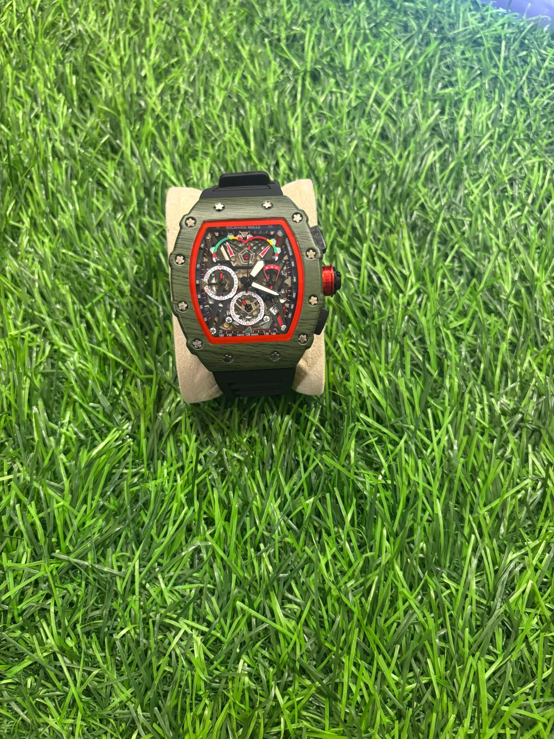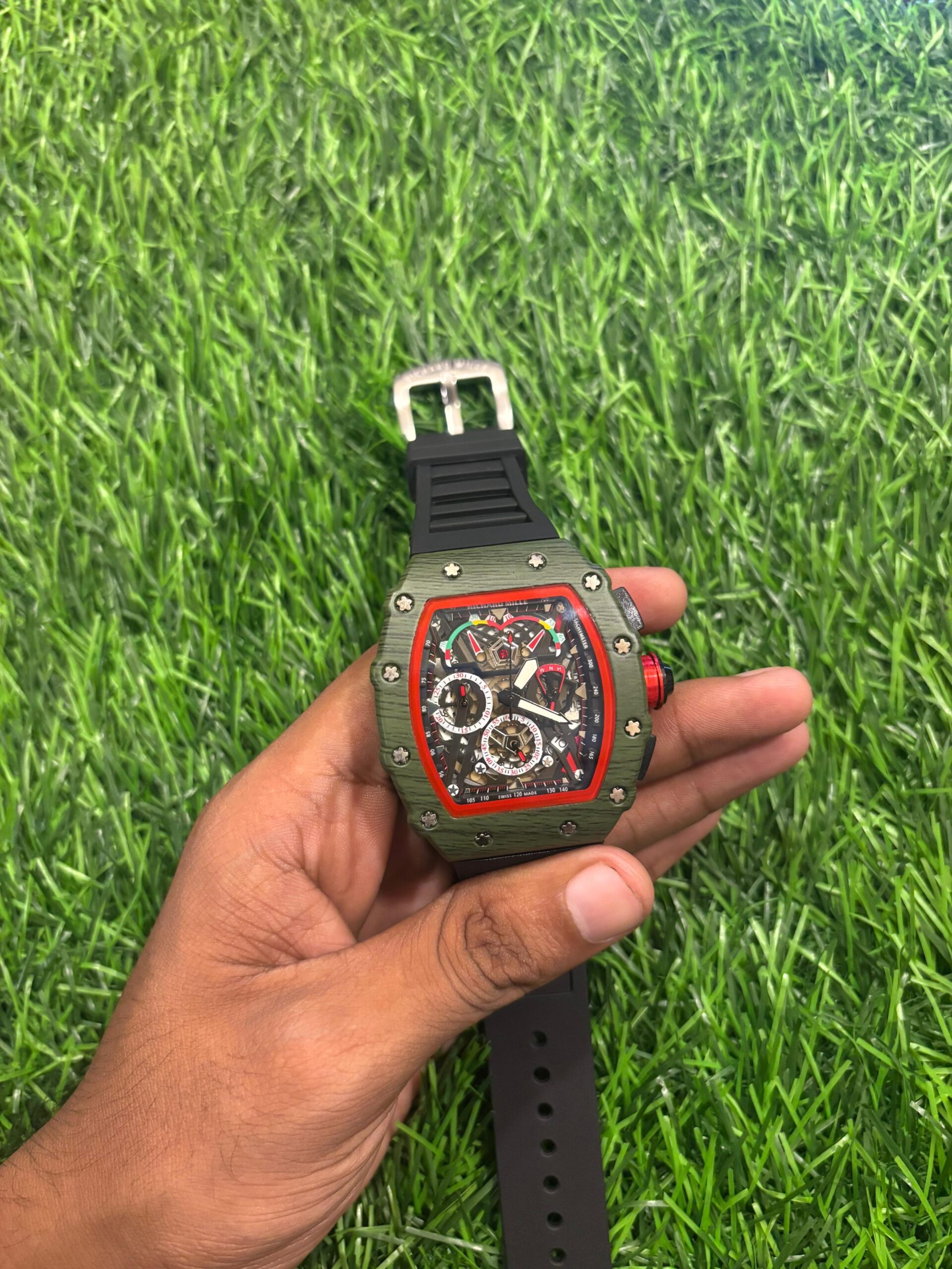 Rich🔥rd Mi🔥lien Patterned Green & Black Silicon Strap Belt Watch