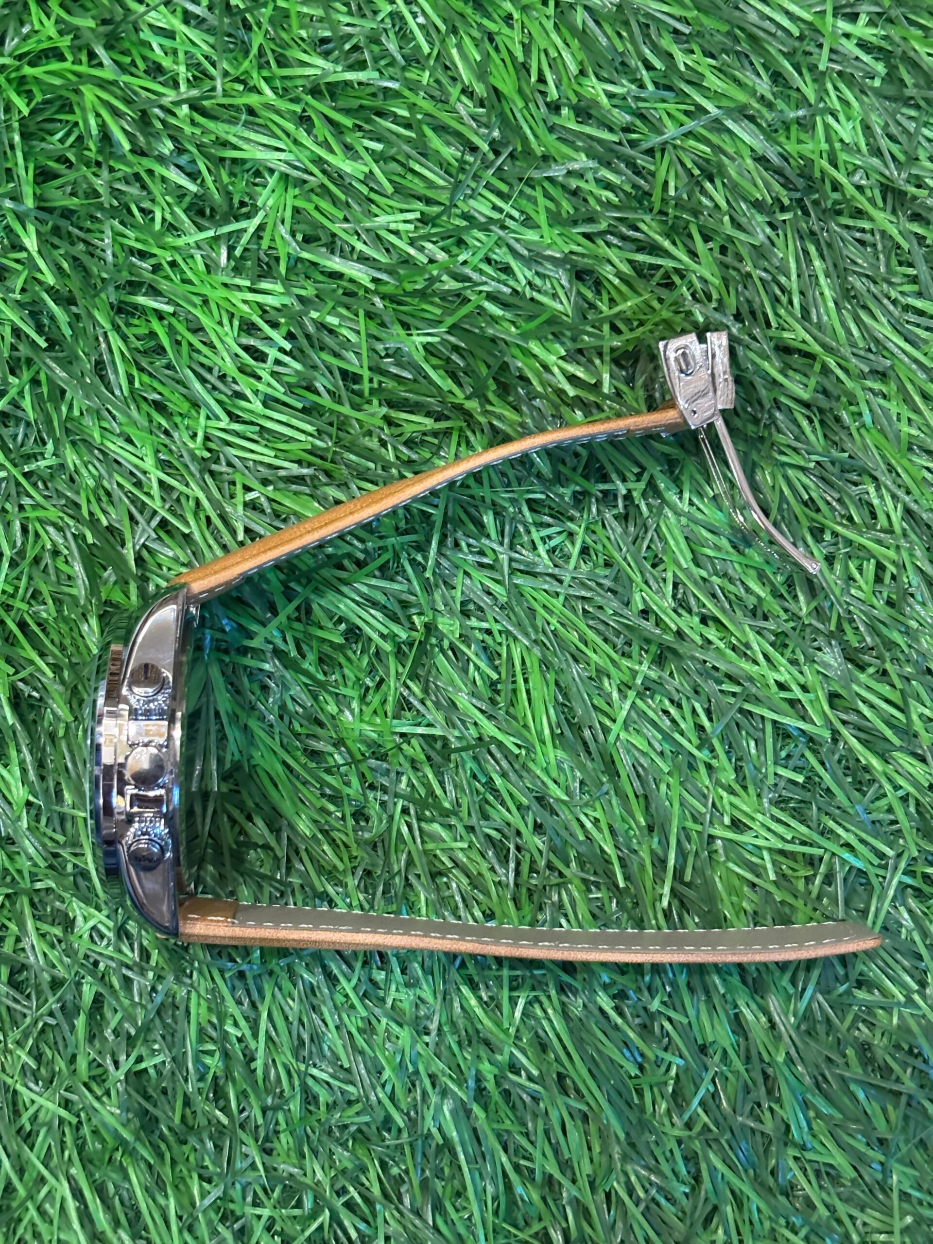 - Functionality: A fully functional chronograph with start, stop, and reset pushers, perfect for timing events with precision. It also includes a date function.