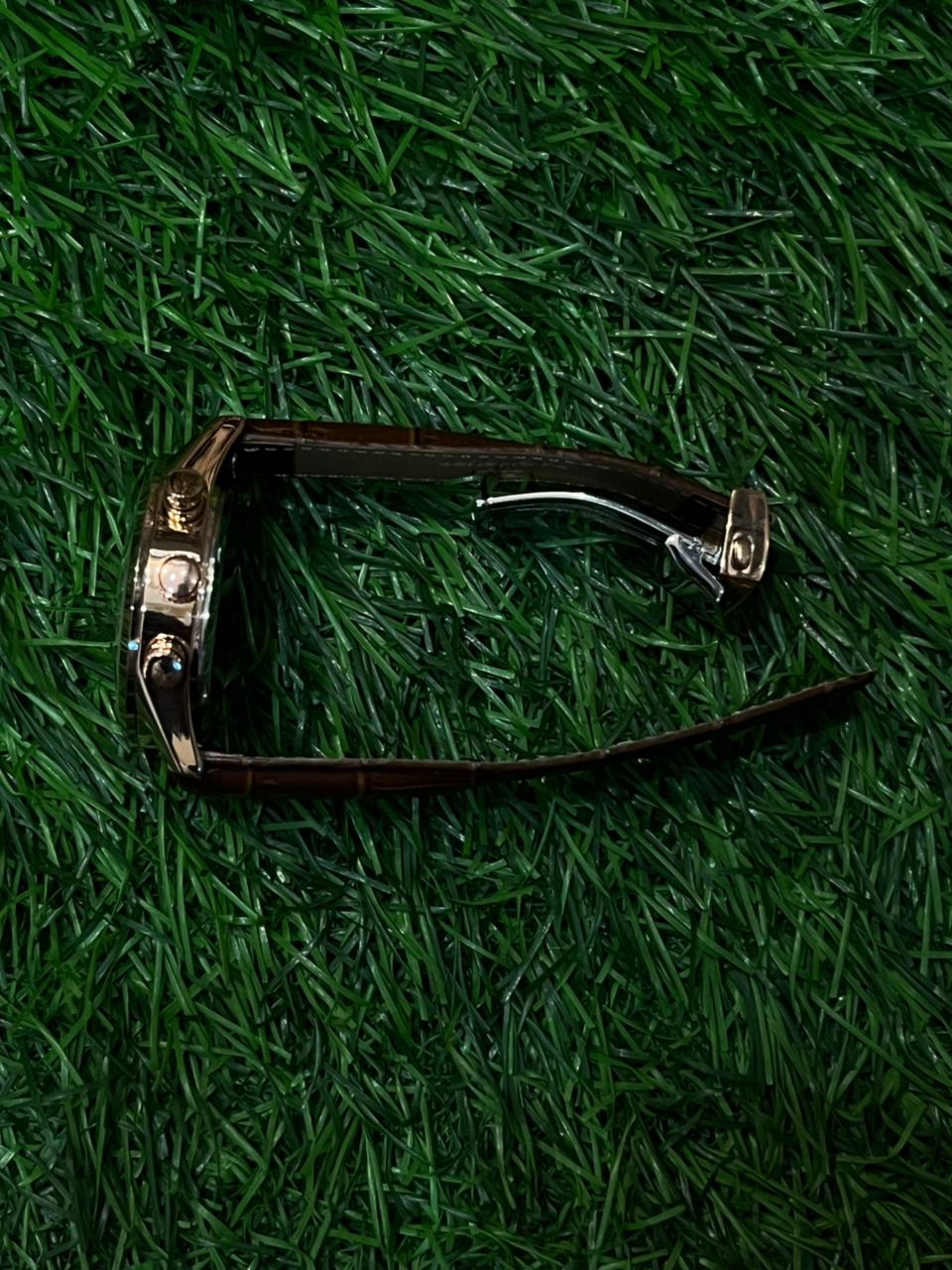 Experience classic racing style with this T🔥g He🔥er Carrera. It features a clean white chronograph dial with three sub-dials and a date window, all set within a polished rose gold-tone case. The luxurious brown leather strap with crocodile embossing completes its sophisticated, sporty look. Price: ₹2,499/-