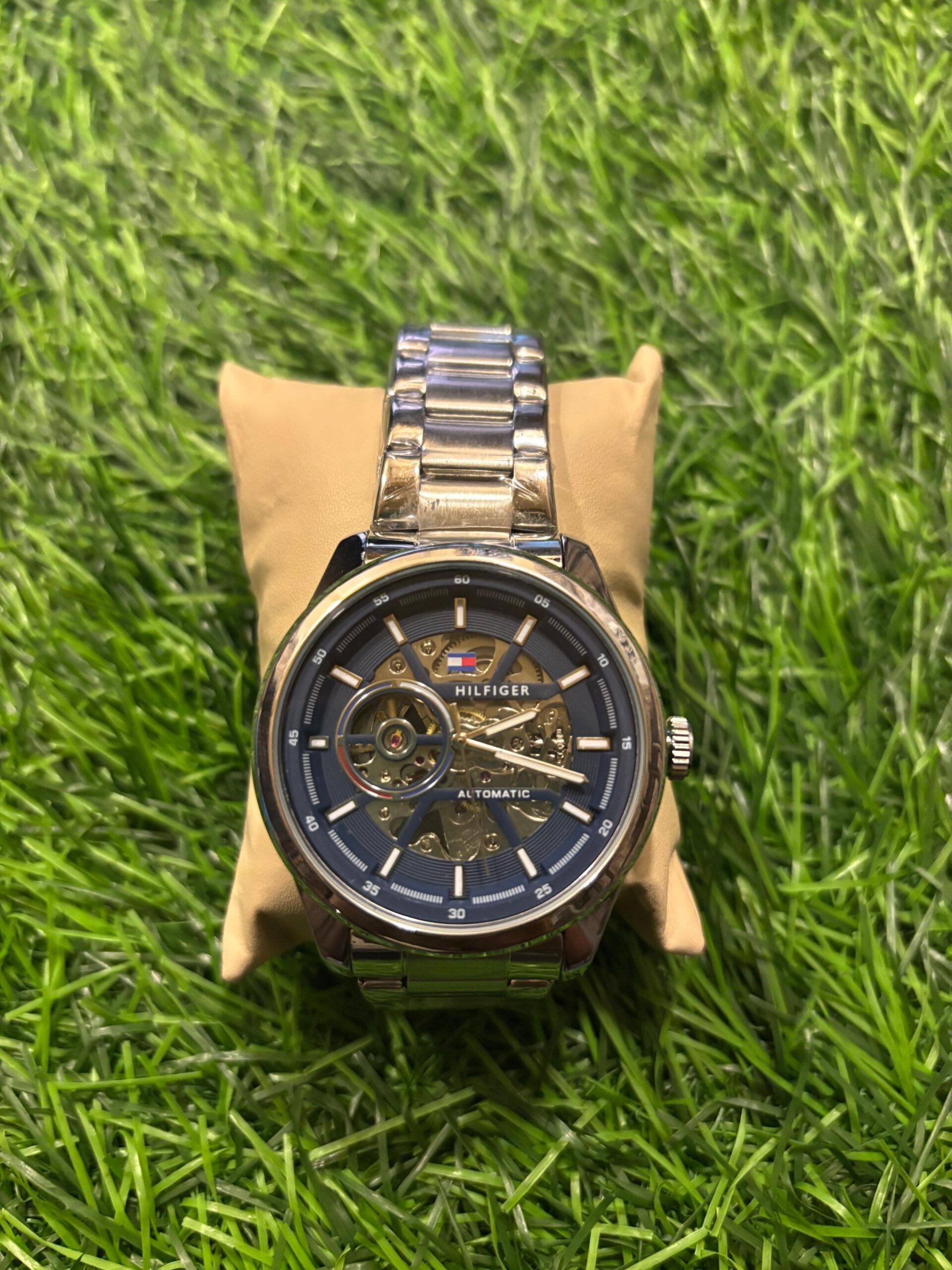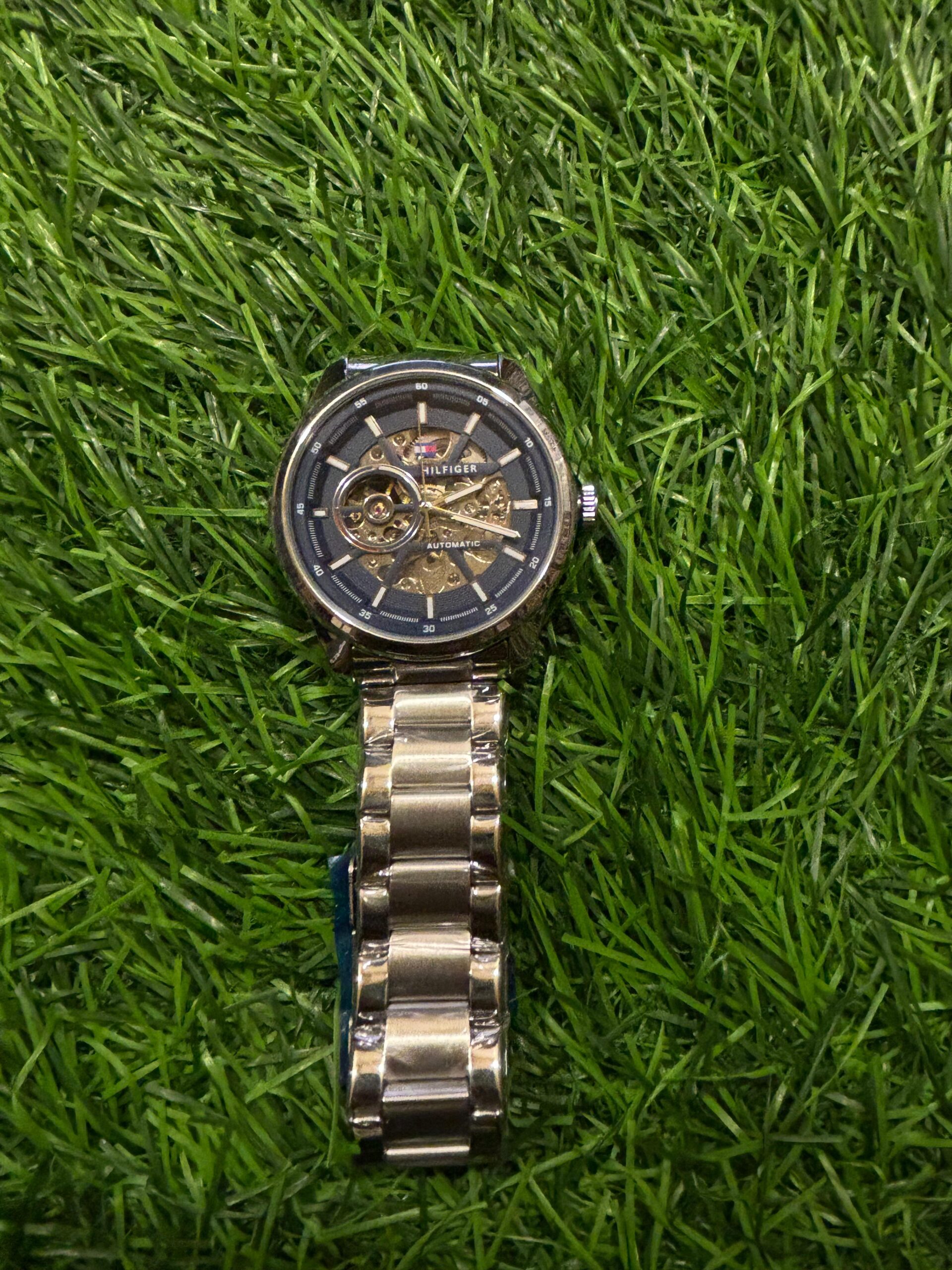 T🔥mmy Hil🔥iger Automatic Silver Chain watch