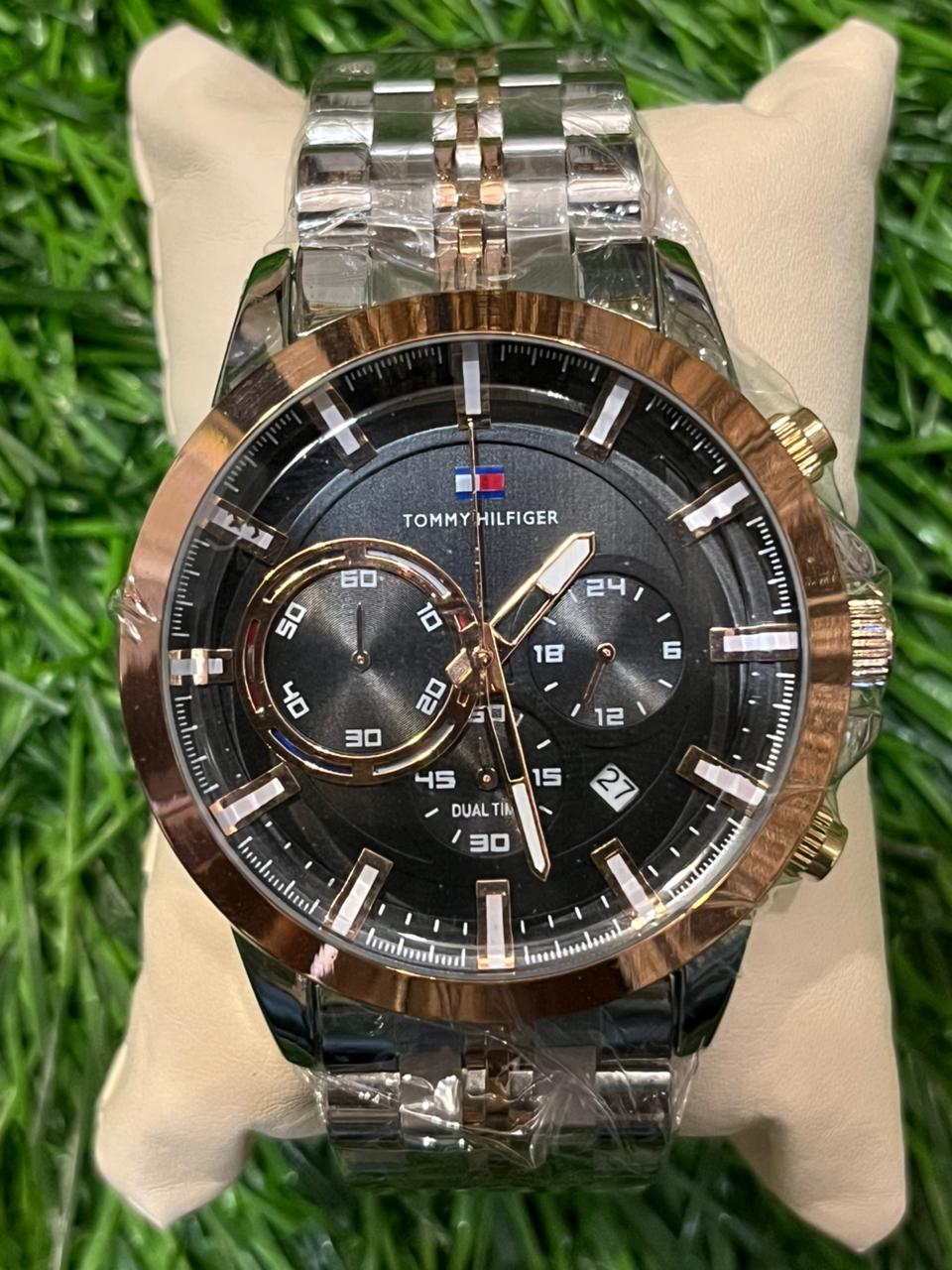 T🔥mmy Hil🔥iger chrono dual tone chain watch for men