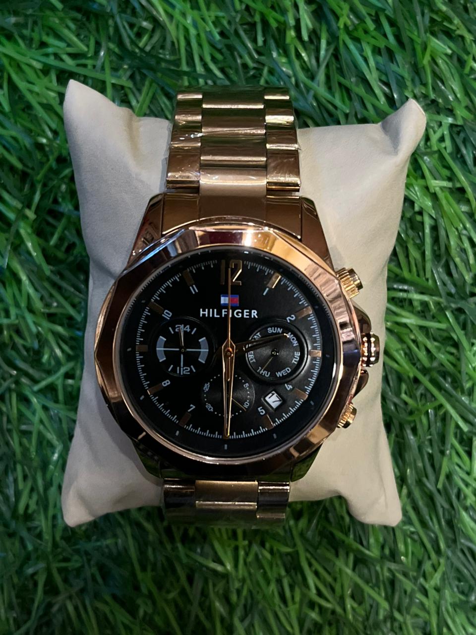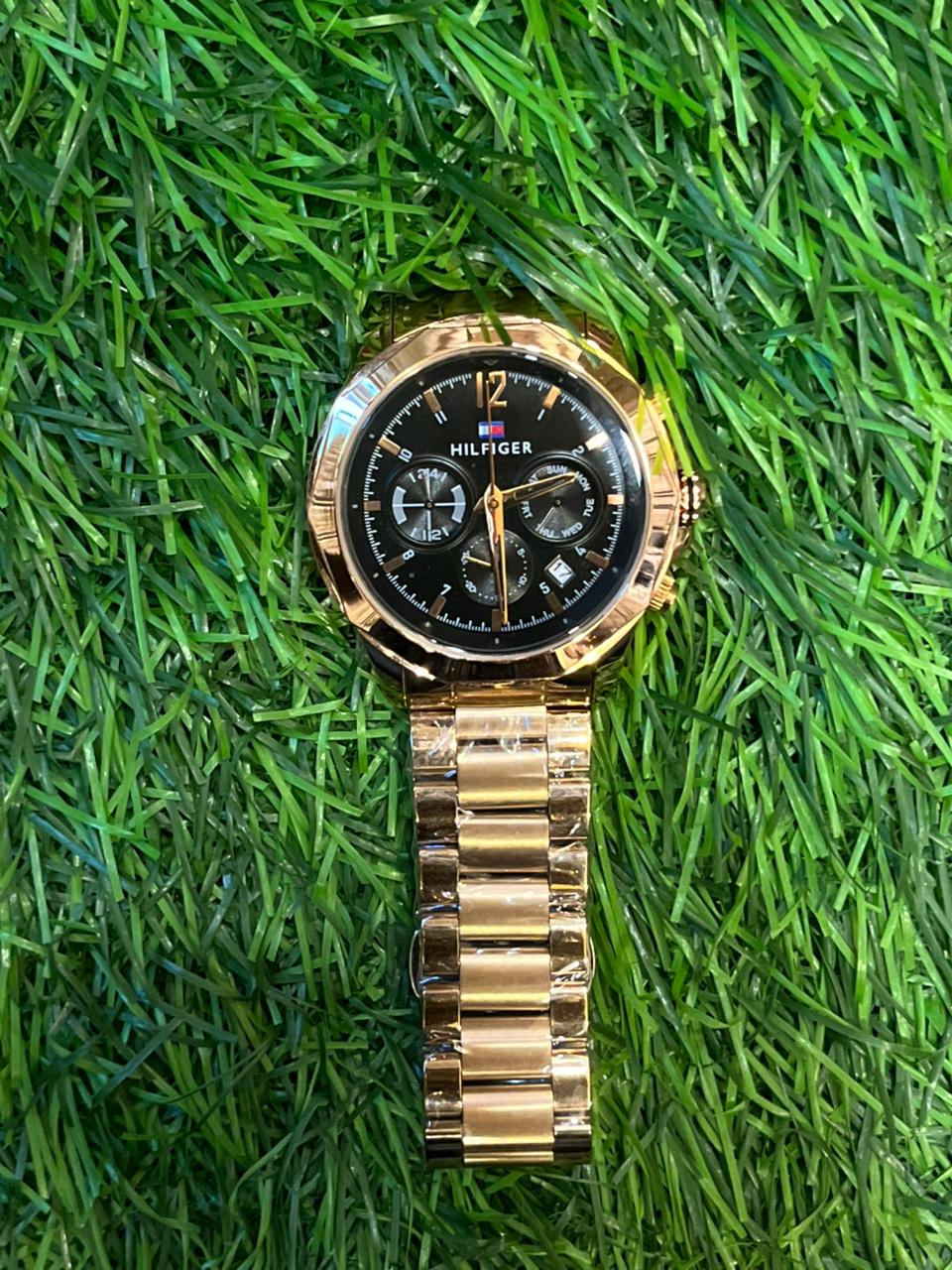 T🔥MMY HILF🔥GER copper chain black dial chromo watch for men’s