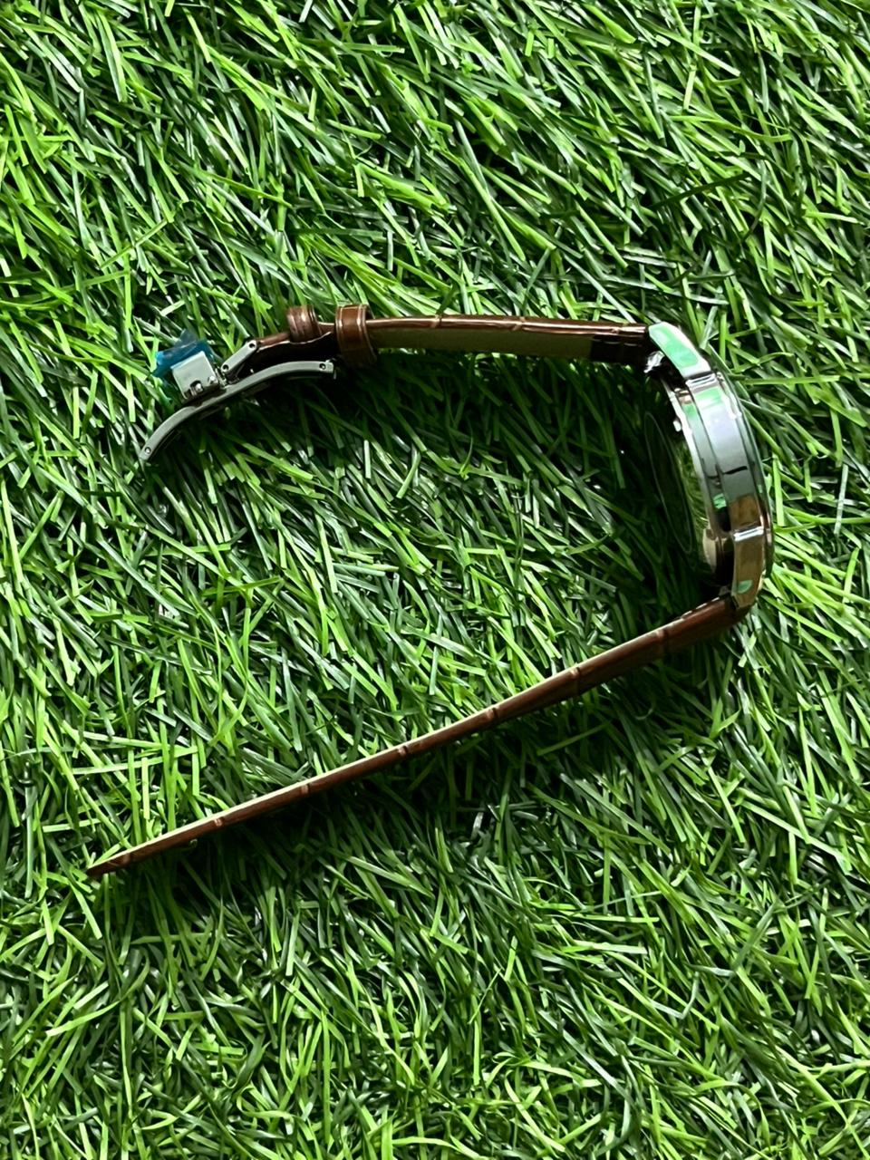 - Build: High-grade stainless steel case with a polished finish, paired with a premium, durable brown leather belt.